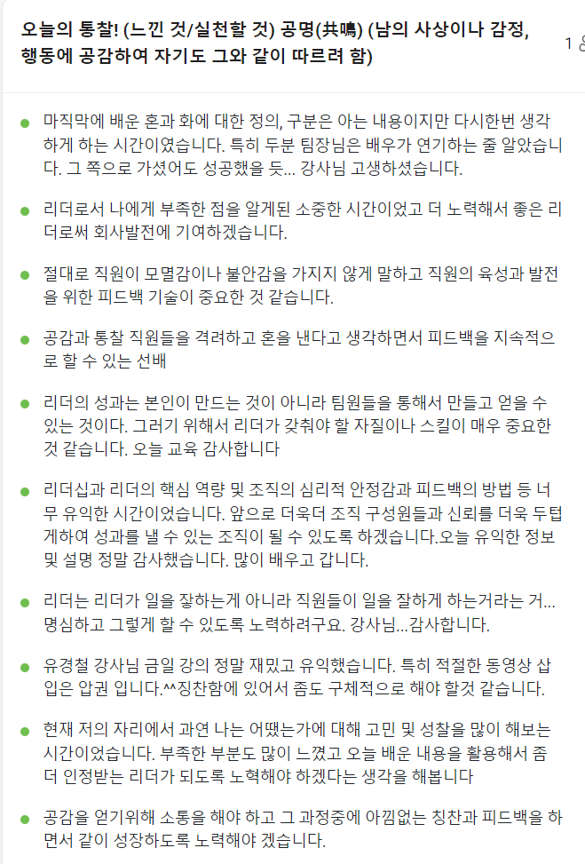 팀장으로서, 리더로서 많은 교육을 받아왔지만 이번 교육은 특별히 의미있게