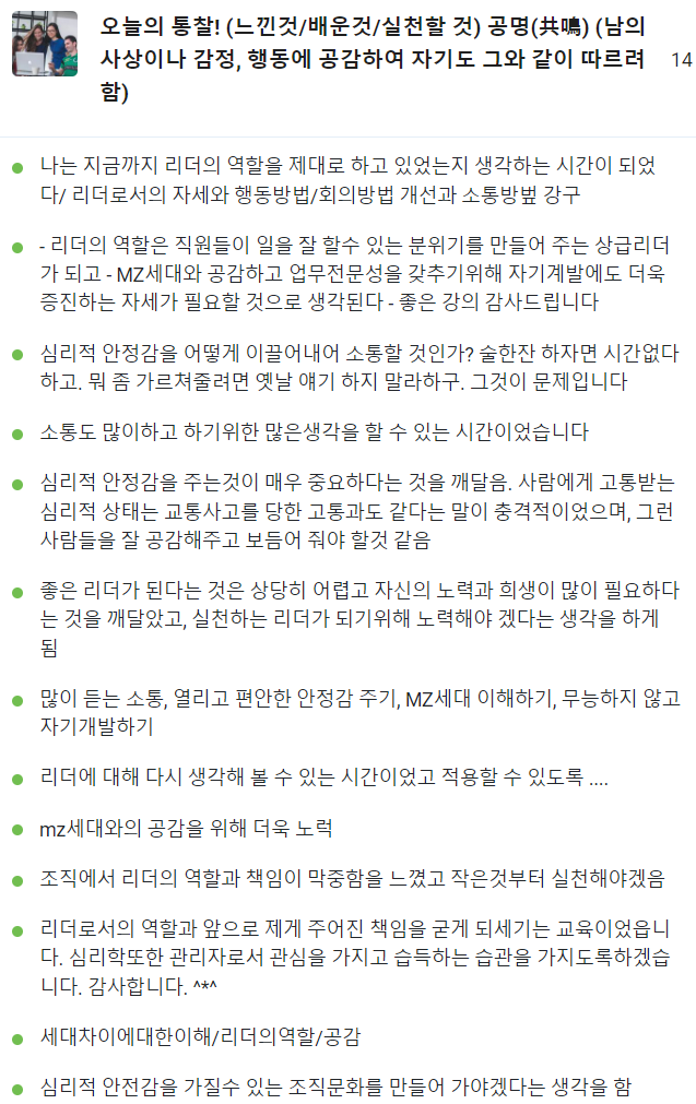 농심 팀장리더십 과정 9차 마지막과정, 리더십 인사이트 과정 강의