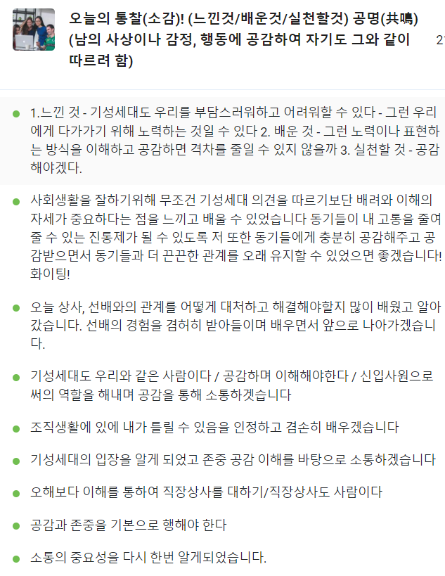 신입사원들도 기성세대를 이해하고 앞으로 어떻게 직장생활을 해야 할지