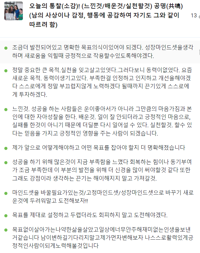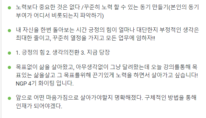 어떻게 열정과 끈기를 보여줄지 한번 같이 생각해 보는 시간을 가졌다.