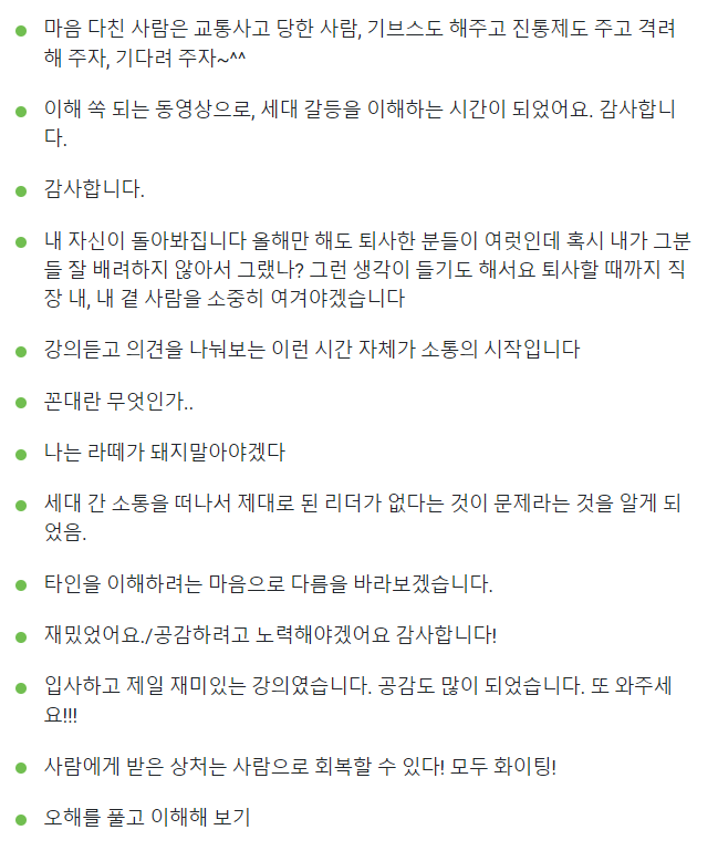 이번 특강을 통해 세대가 서로를 이해하고 어떻게 행동하고 말해야 하는가에 대한