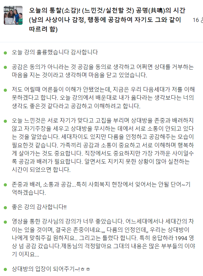 사람들을 상대하는 교육생들의 특성에 맞게 인간의 관계와 소통에 대한