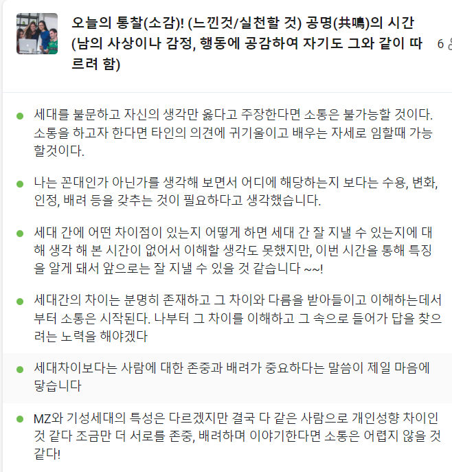 이번 과정은 MZ세대와 기성세대와의 세대공감 커뮤니케이션으로 진행했다.