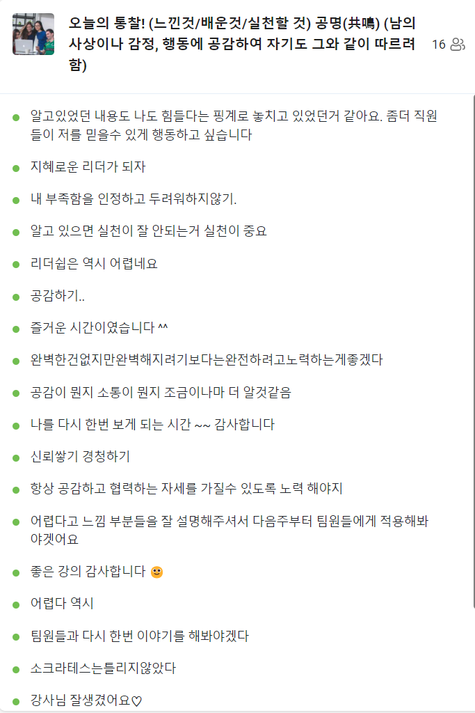 리더의 인사이트를 통해 다양한 관점을 경험했던 의미 있었던 시간....
