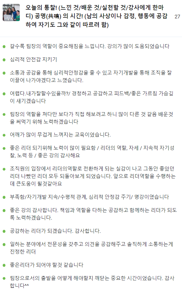 CJ제일제당 부산공장 현장관리자 소통리더십 과정