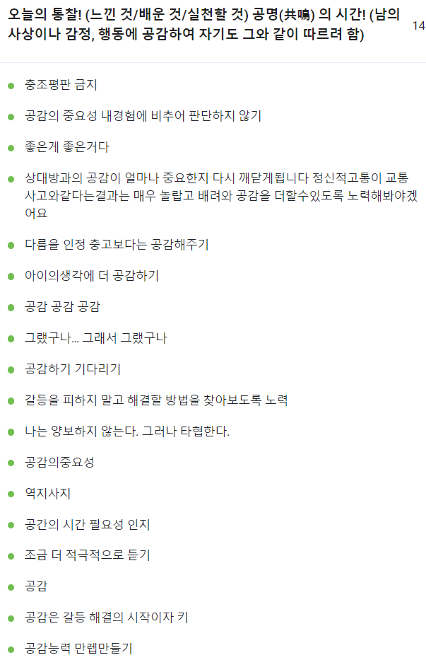 자신을 살펴보고 개선해 나갈 수 있는 힘을 키울 수 있는 시간.