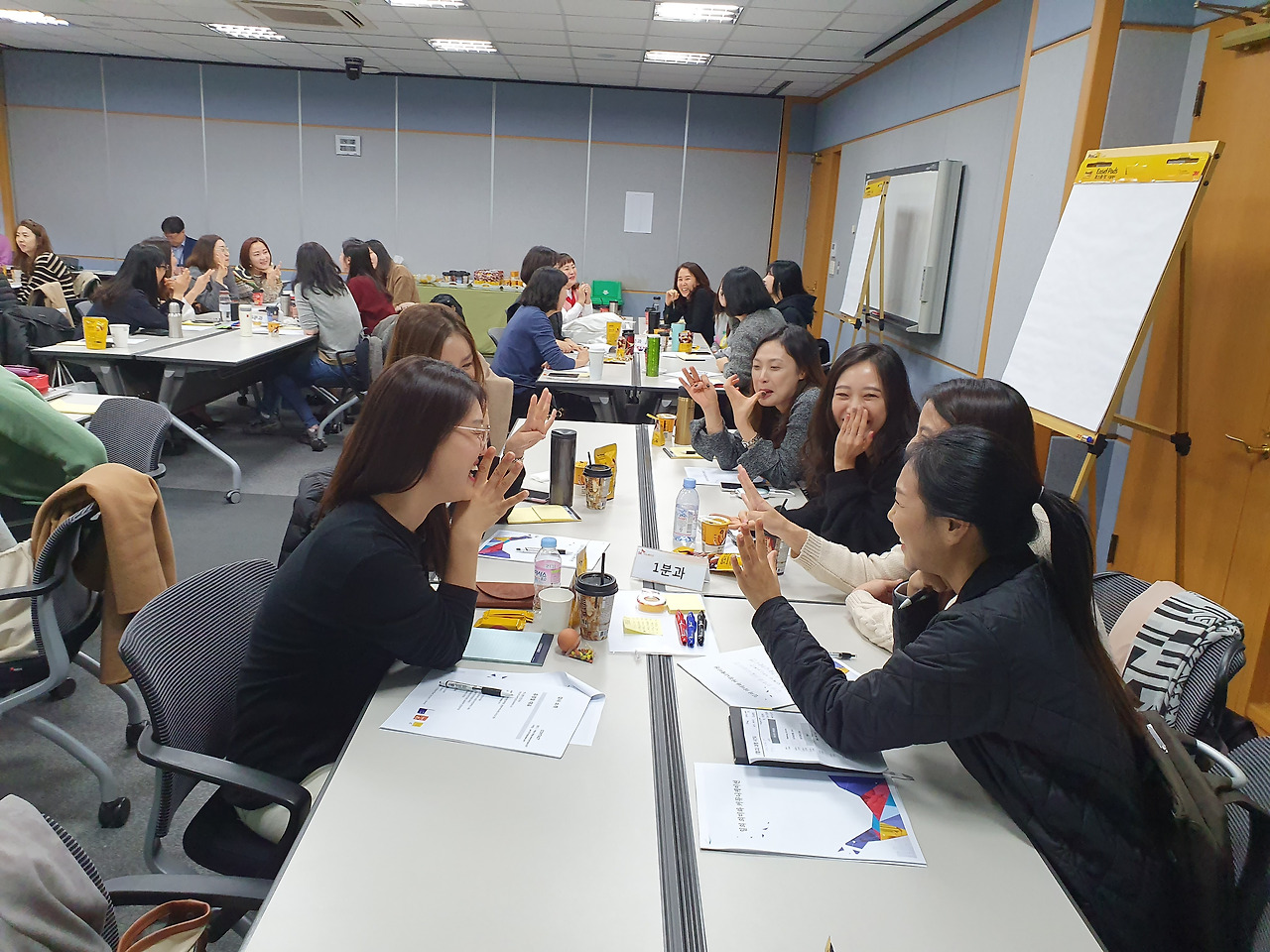 여성 43명의 교육생이 밝은 표정을 하면서 교육이 진행이 되는데 진행하는 강사도 무척 즐거운 기운이 느껴진다. 함께 이야기 하고 토의하면서 일에 대한 의미와 가치에 대해 생각해 본다. 우리는 왜 일을 하는가? 일을 하는 목적과 의미가 명확해야 실제 내가 하는 일에 대해서 가치를 느끼게 된다. 일의 재정의를 통해 내가 하는 일에 대한 소중함을 깨닫고 실제로 스스로 동기부여 할 수 있는 모멘텀을 가질 수 있다.