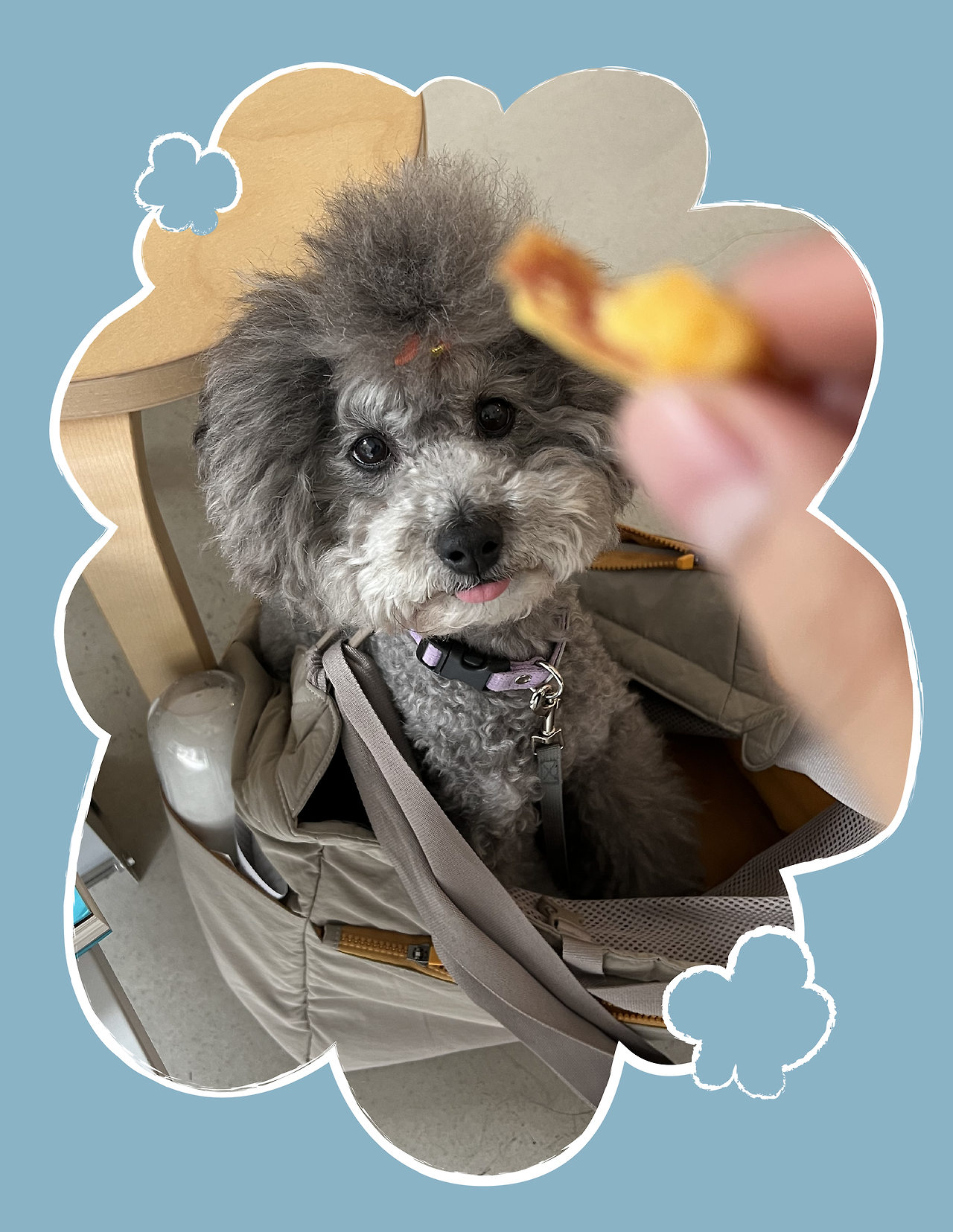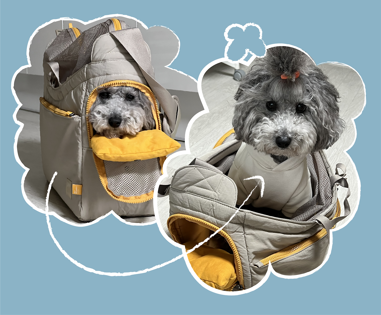 물론 함께 나들이를 가도 마음이 늘 편하지는 않다. 우리 집은 원룸촌에 있어 차도와 인도가 잘 구별되어 있지 않아, 길을 걸을 때는 줄을 짧게 잡고 한껏 예민해져 있다. (어이없는 부분은 나만 예민하고 애니는 차를 무서워하지 않는다. 이제껏 차들이 알아서 비켜가니 조심하지 않는 듯하다.) 애니와 대중교통을 이용할 때에는 옆가방 형태의 산책 가방에 들려 이동한다. 우리나라 법규상 반려동물은 대중교통 이용 시 전신이 가려지도록 가방(혹은 케이지)에 들어가야 한다. 예를 들어 버스 이용 시 가방에 강아지가 얼굴을 내놓고 있으면 기사님께서 승차거부를 하실 수 있다.(탑승객 항의가 주된 이유다.) 때문에 애니가 멀리 이동할라치면 좁은 가방 내에서 몇십 분은 가만히 있어야 한다. 정말 정말 대견하게도 애니는 이동시간 뒤척임 없이 잘 참아내지만, 애니도 나도 아주 쾌적한 경험은 아니기 때문에 이동을 할라치면 정말 많은 부분은 고려할 수밖에 없다.