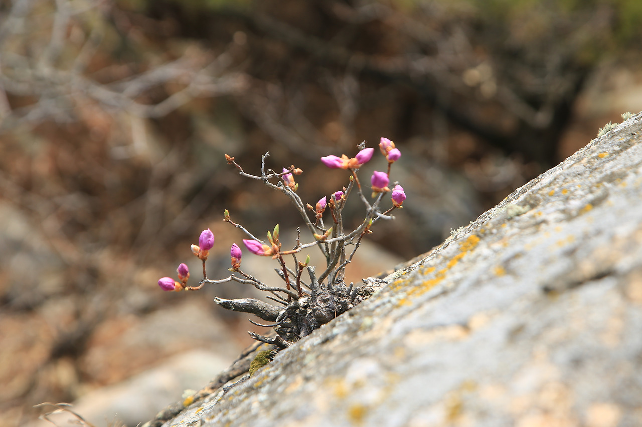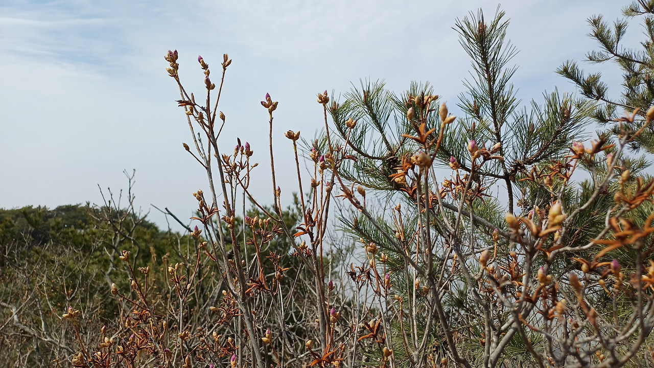 작은 새순 하나도 그냥 저절로 돋아나는 게 아니란다. 애쓰고 힘쓰며, 나무 전체의 응원을 받아 세상에 나온다 생각하니 그냥 바라볼 수가 없다. 대견하다 쓰다듬어주고 싶어진다. 진달래도 꽃봉우리를 조금 내밀고 있다. 일주일 정도만 있으면 활짝 피어날 것 같다. 꽃을 보기에는 조금 빠른 날에 와서 아쉽다. 눈에 보이지 않는다고 없는 것이 아님을 알기에, 연분홍 진달래꽃과 연초록의 새싹을 마음으로 느끼며 정상으로 향한다.