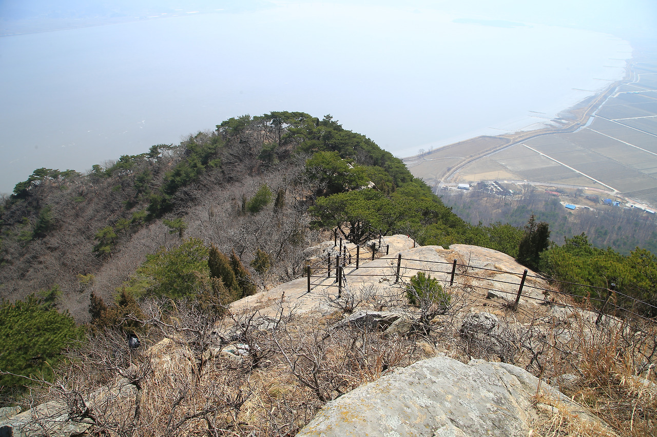 정상에 올라서 보이는 모습은 360도 파노라마 풍경 맛집이다. 잔잔한 바다와 드넓은 평야, 조용한 아담한 마을이 어우러져 아름다운 그림처럼 펼쳐져 있다. 북한과 인접한 강화도 교동도가 바로 눈앞에 있다. 맑고 쾌청한 날에는 멀리 북한의 개성시와 연풍군이 한 눈에 보인다. 오늘은 안개 낀 듯 뿌연 미세먼지로 가려서 보이지 않는다. 북을 향해 설치된 망원경에 초점을 맞추어본다. 가까이 있으나 가지 못하는 땅과 북한 주민들을 생각하며 이 땅에 평화를 기원한다.