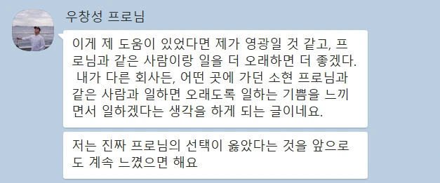 마지막으로, 발행 전 팀장님께 미리 글을 보여드리고 받은 답변으로 글을 마칩니다.