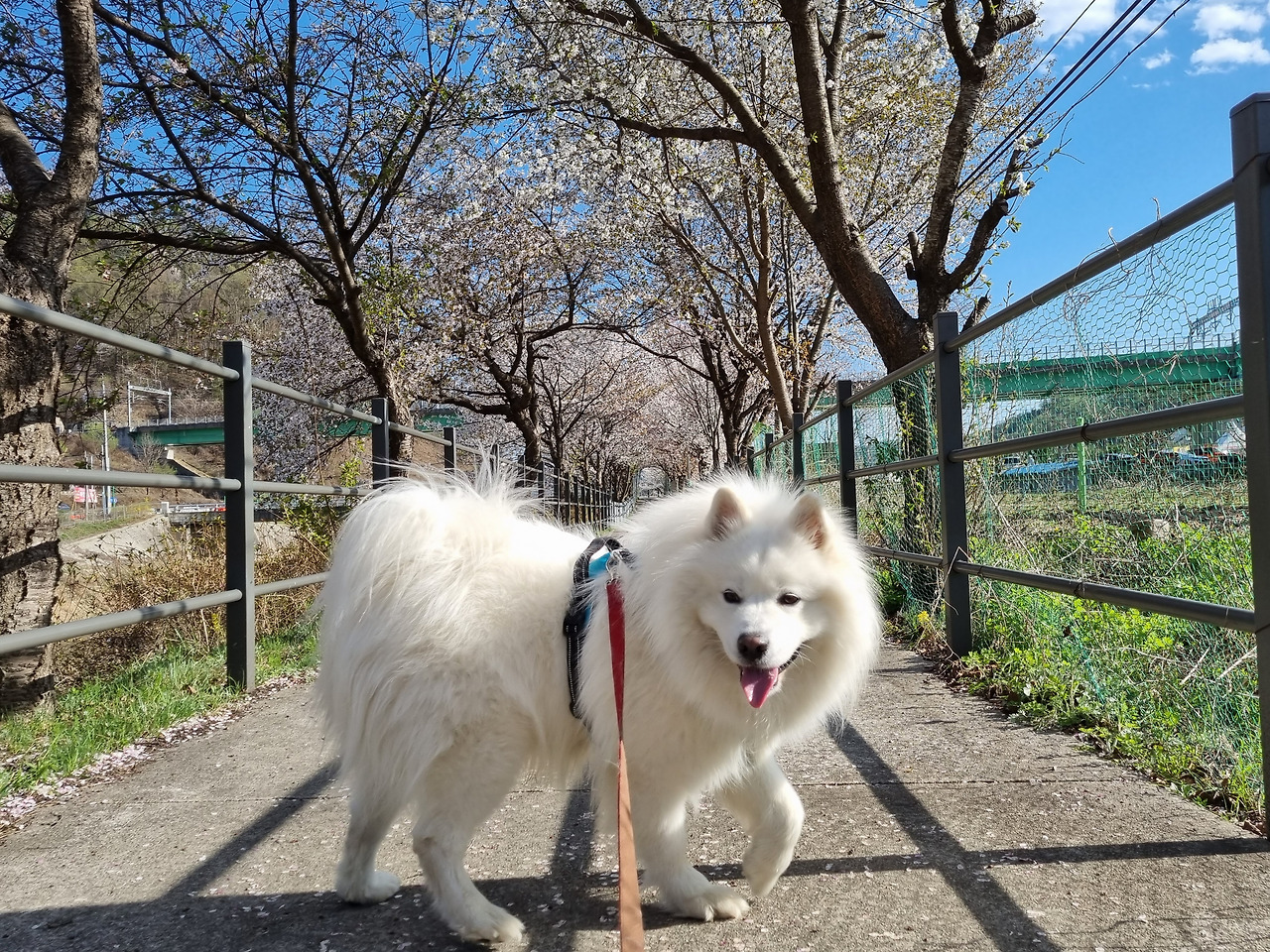 -썰매견 아니랄까 봐 32킬로가 넘는 몸으로 줄이 당겨질 정도로 나보다 막 앞서간다. 방랑견, 길냥이를 보고 확 달려가서 넘어져서 다친 적도 몇번 있다.
