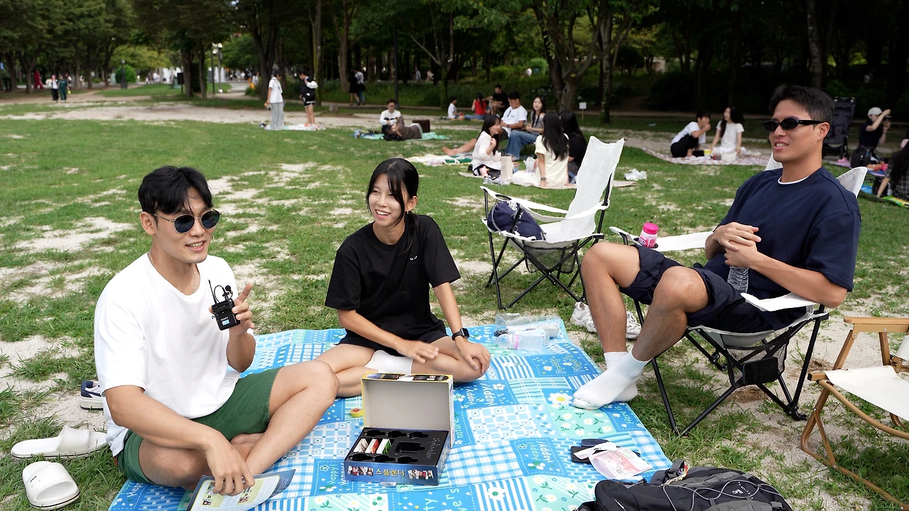 다음 인터뷰이를 찾아 주위를 둘러보다 돗자리를 깔고 보드게임을 즐기고 있는 세 명에게 다가갔다.