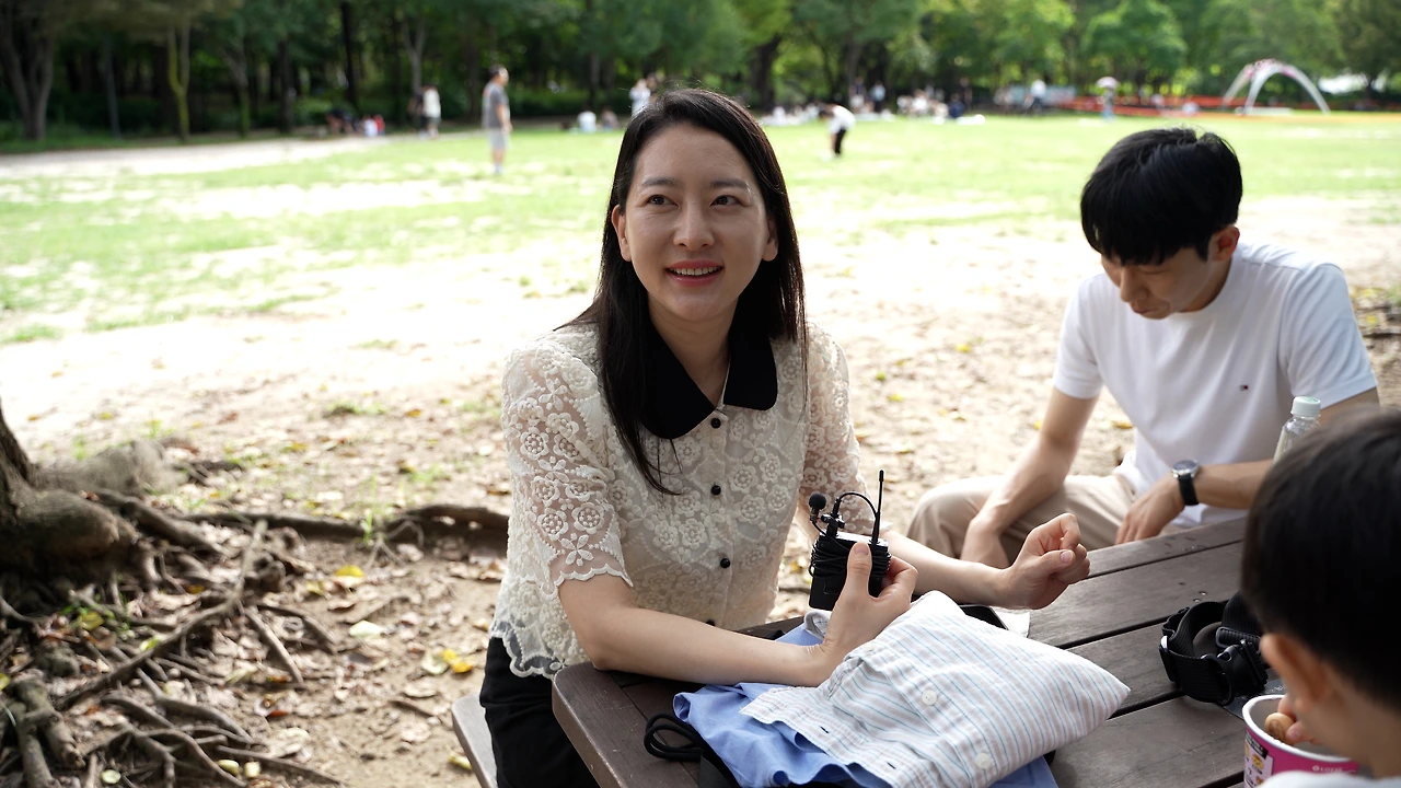 서울숲 입구를 지나 조금 더 안쪽으로 들어가니, 가족들과 함께 벤치에 앉아 있는 분이 눈에 들어와 말을 걸어보았다.