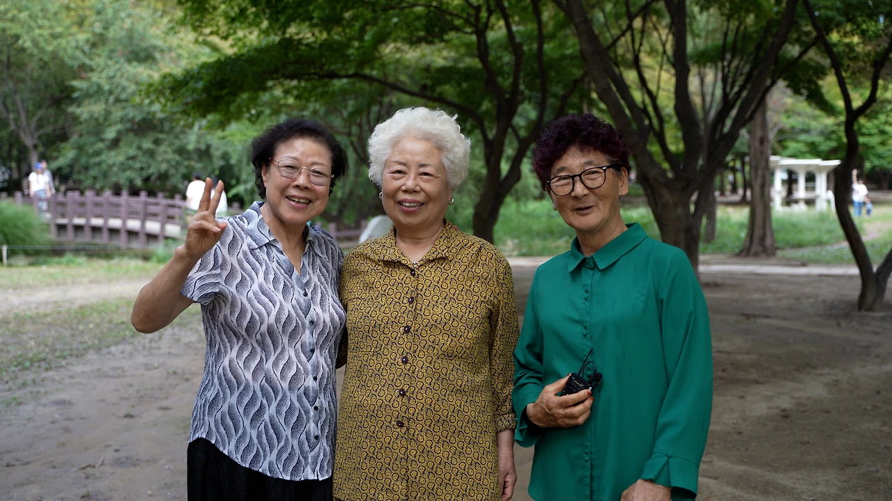 인터뷰를 마치고 자리를 옮기려던 찰나, 맨발로 걷고 있는 세 분의 할머니를 발견했다.