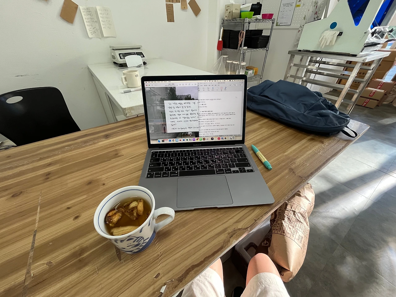 예림: 제가 평소에 빵집을 앞을 지나다니면서, 인상 깊었던 편지가 있었는데요. 사장님이 길고 지루한 여름을 버티기 위해 ‘균열’을 내줘야 할 것 같다고 하셨어요. ‘굳이’ 무언가를 해내는 거죠. 그렇다면 효율성을 버리고 ‘굳이’ 해내고 싶은 것들이 있나요?