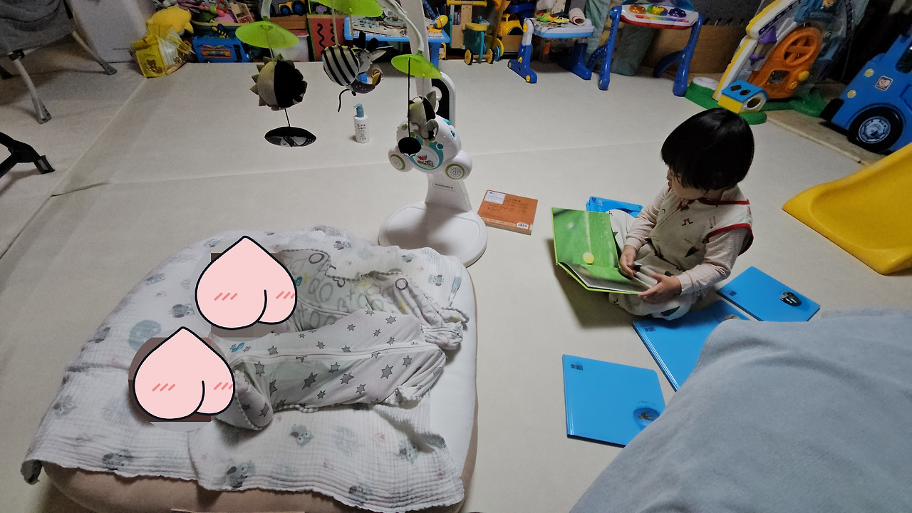 처음으로 까토가 푸링이 옆에 누워서 토닥도 해주고 팔베개도 해주고 책도 읽어주었다.