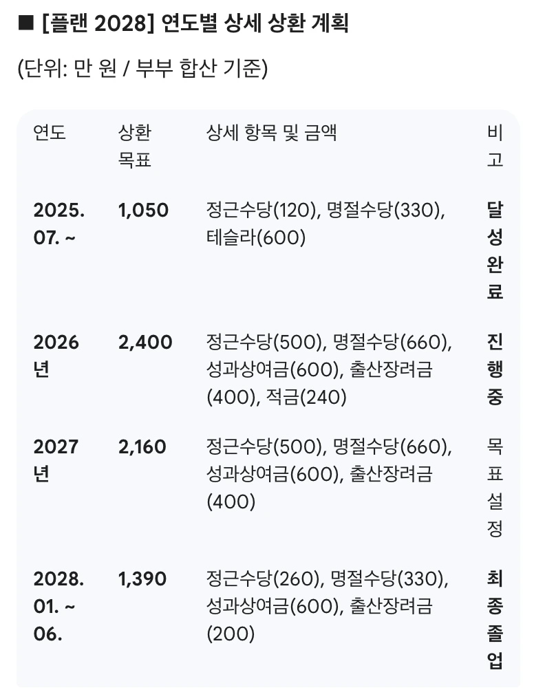 3. 전략 2: 신용대출 7,000만 원, 3년 안에 끝내기 주담대가 마라톤이라면, 변동 금리 위험이 있는 신용대출 7,000만 원은 즉시 제거해야 할 장애물이다. 우리는 이를 위해 '플랜 2028'을 가동했다.