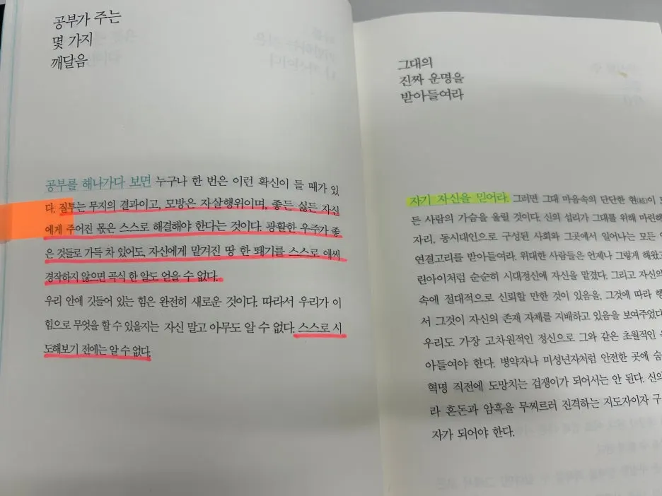 이 책은 자기 신뢰에 대해 이야기하고 영혼의 성장에 대해서 이야기한다.