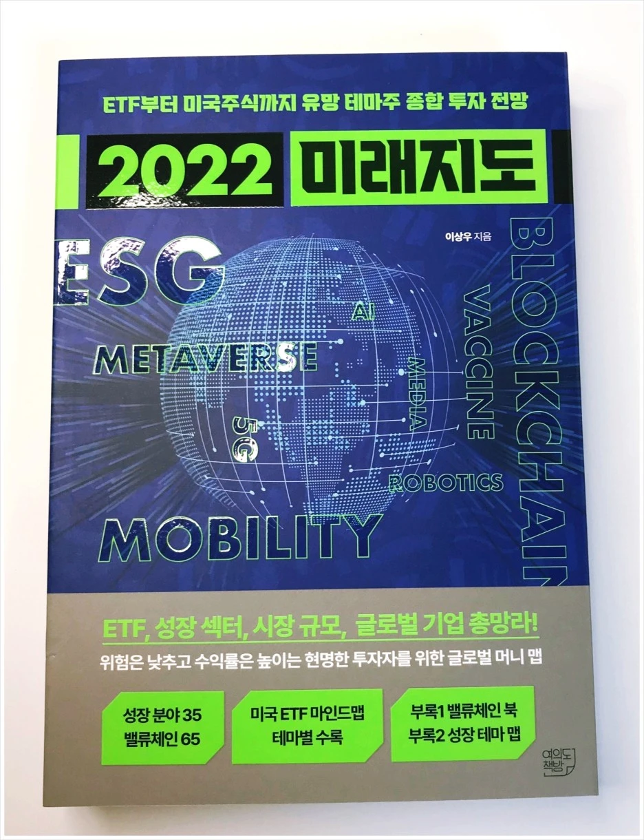 오늘 소개할 책인 [2022년 미래 지도]라는 책은 주식 투자를 시작하기 전에 또는 주식 투자를 하고 있지만 앞으로 어떤 유망한 기업에 투자를 해야 할지에 대해서 고민하고 있는 투자자들에게 도움이 되는 책이다. 난 이 책을 투자 백과사전이라고 부르고 싶다. 투자 백과사전이라는 말에 걸맞게 이 책에는 다양한 분야의 성장 모멘텀을 가진 글로벌 기업들을 마인드맵 형식으로 정리한 책이다. 총 35가지 테마로 나누어서 다양한 표와 함께 잘 정리되어 있어서 주린이들도 이해하기 쉽게 정리된 책이다. 각 테마에 대한 이해, 성장성 분석, 밸류체인 그리고 경쟁력 있는 기업 소개 순으로 배치되어 있다.