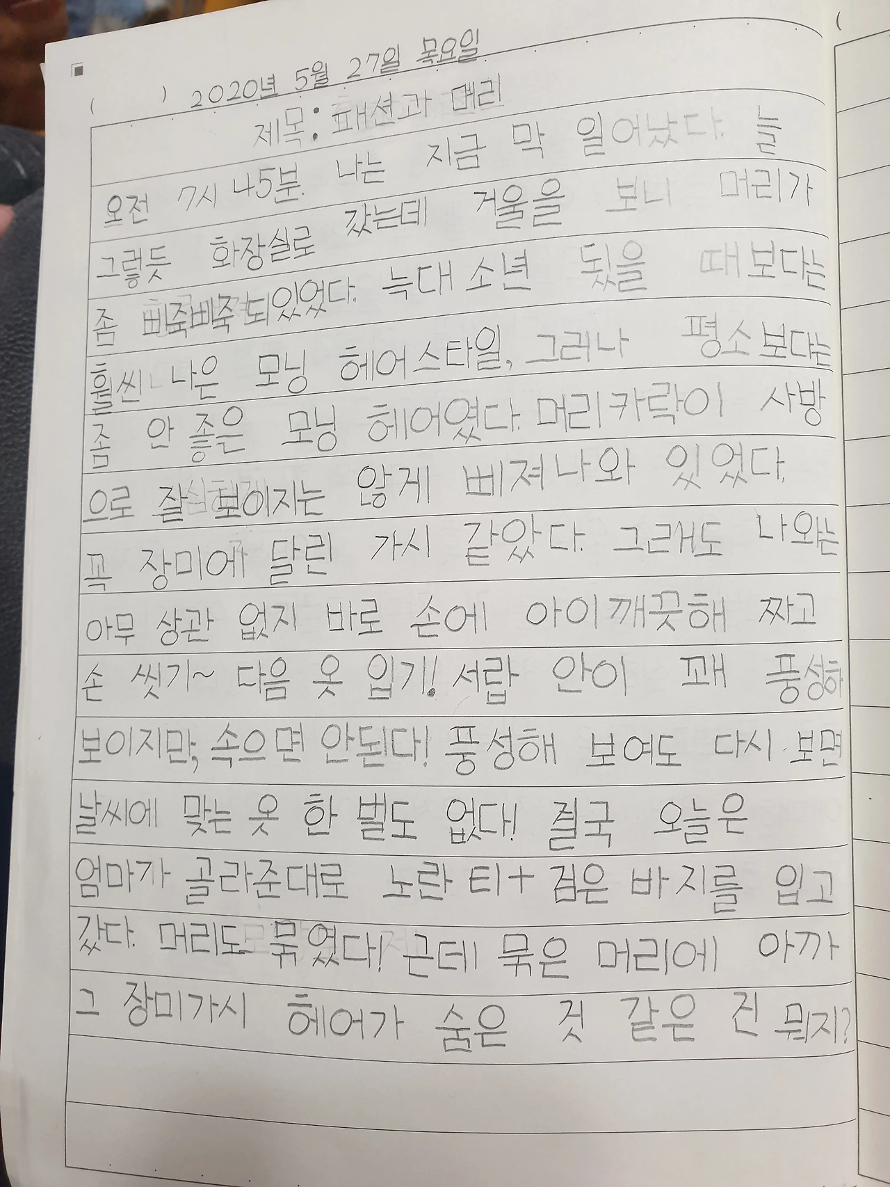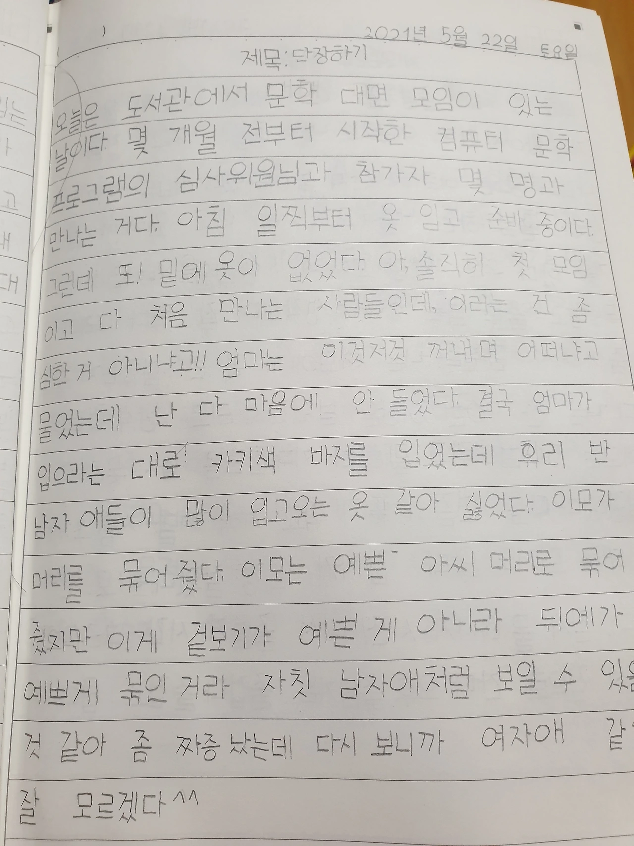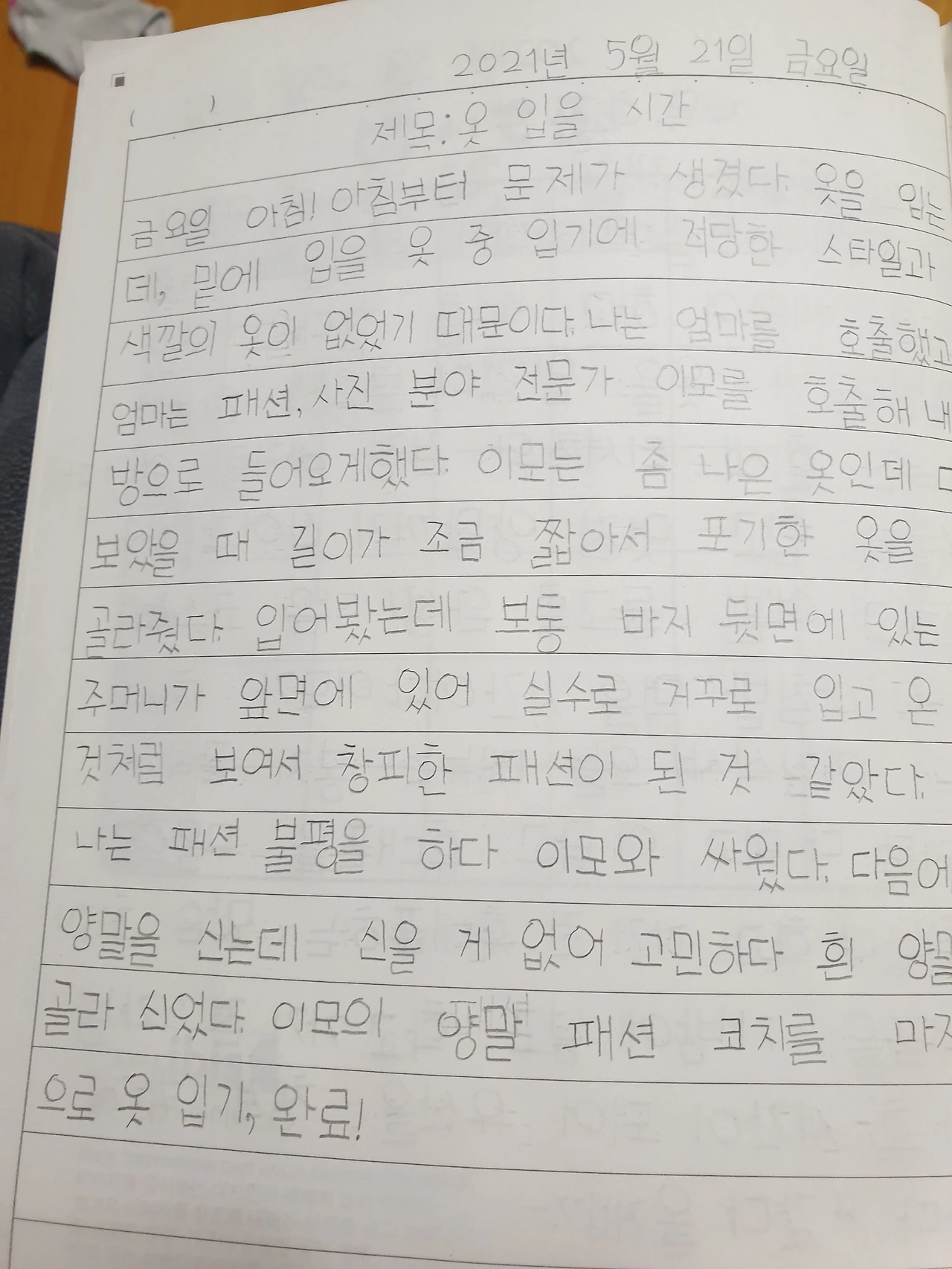 내 옷만 사 입지 않았다. 딸아이 일기만 보면 엄마는 아이 옷 하나도 안 사주고 저만 멋 부리고 다니는 줄 알 것 같다. 억울하군. 나는 Z사 점프슈트도 사주고. 멜빵 청바지도 사줬다. B사 카디건, 주름치마도 사줬고 , L사 청치마도 사줘서 있다. 그런데 맨날 청바지에 티셔츠만 입고 가려고 한다. 조금이라고 특이하면 안 입고 가려고 한다. 매일 나는 8시 10분경에 나의 학교로 출발해서 몰랐는데 너 일기를 읽으면 정말 매일 옷 타령을 하고 이모랑 싸우고 갔구나 ㅠㅠ