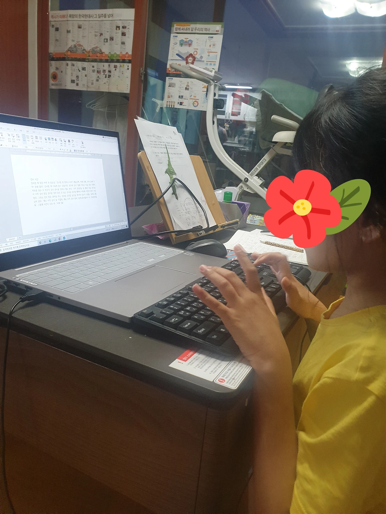 어미는 쓸 글이 고갈되었는데 내 딸은 키보드로 글을 쓰는 재미에 빠졌다. 독수리 타법도 제법 늘었다. 엄마 닮아 포기가 빠르다. 선착순에서 급식 1등은 내 딸은 절대로 못할 것 같다. ㅎㅎ 나도 금요일은 급식을 선착순으로 했는데 서로 내가 앞이라고 싸워서 주마다 남자 여자 바꿔서 먹기로 했다. 선착순이 없는 우리 반에서 칭찬도장을 모아서 쿠폰을 뽑을 때 제일 인기 많은 쿠폰은 원하는 친구와 급식 2일 선착순으로 먹기이다. 급식 경주에서 꼴등 하는 딸에게 급식 1일 쿠폰을 주고 싶지만 너는 우리 학교 학생이 아니니 그냥 꼴등 줄에서 맛있게 먹고 와!