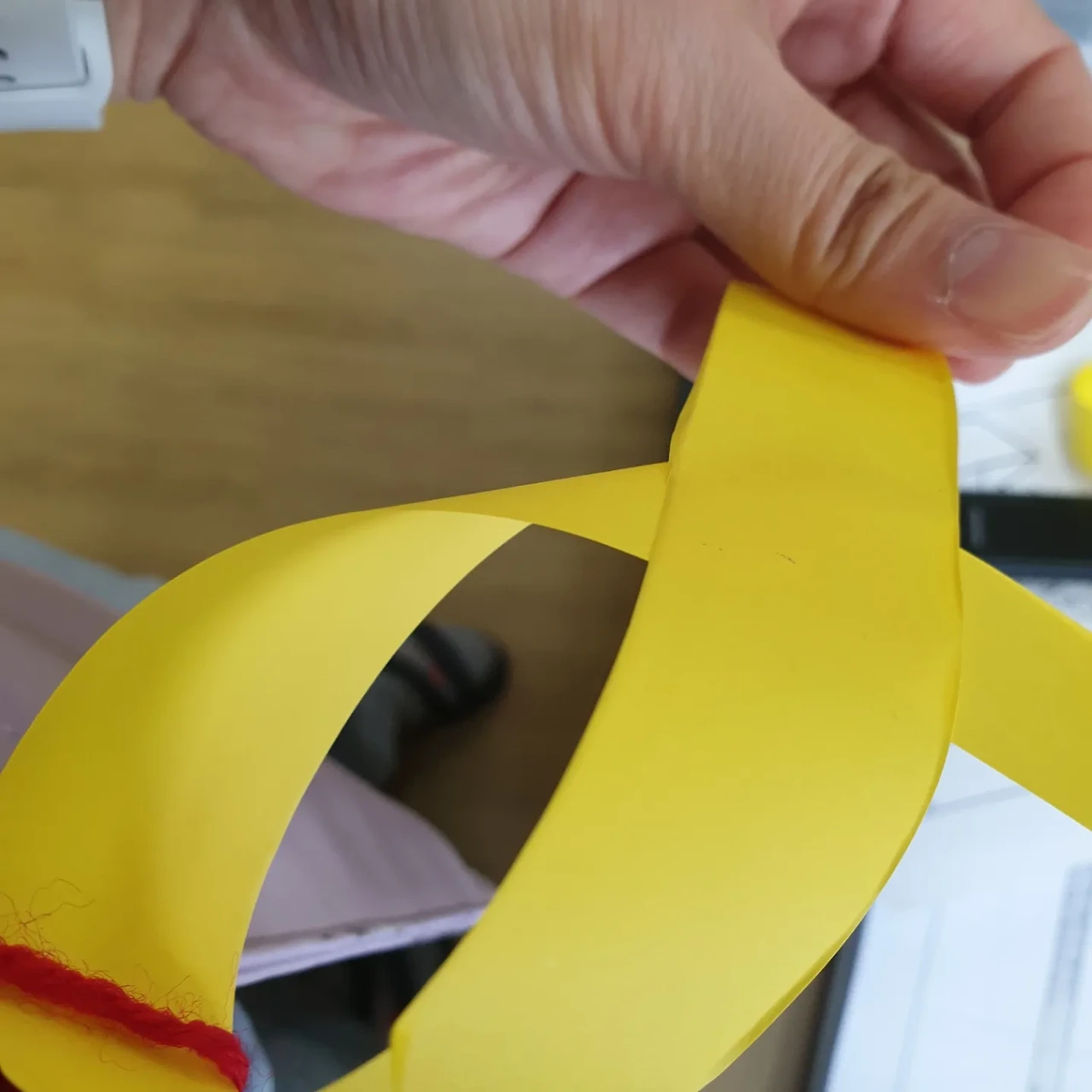 A4노란 색지로 리본을 만들어 원하는 아이들만 가방에 달아주었다.