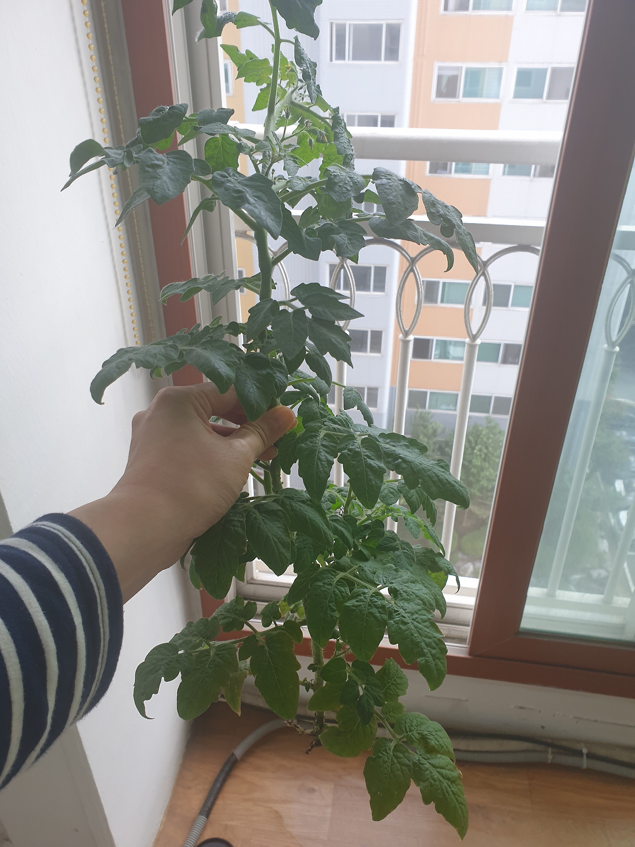 내 토마토는 고꾸라져버렸다. 애써 키웠는데 이렇게 순식간에 뚝 부러져버리다니 아쉬웠다. 열매를 맺지 못한 아쉬움인지, 더 정성 들여 돌보지 못한 아쉬움인지 모르지만 그렇게 나의 토마토는 생을 마감했다. 매정한 나는 흙으로 덮어주지 않고 붉은 쓰레기봉투에 넣었다.