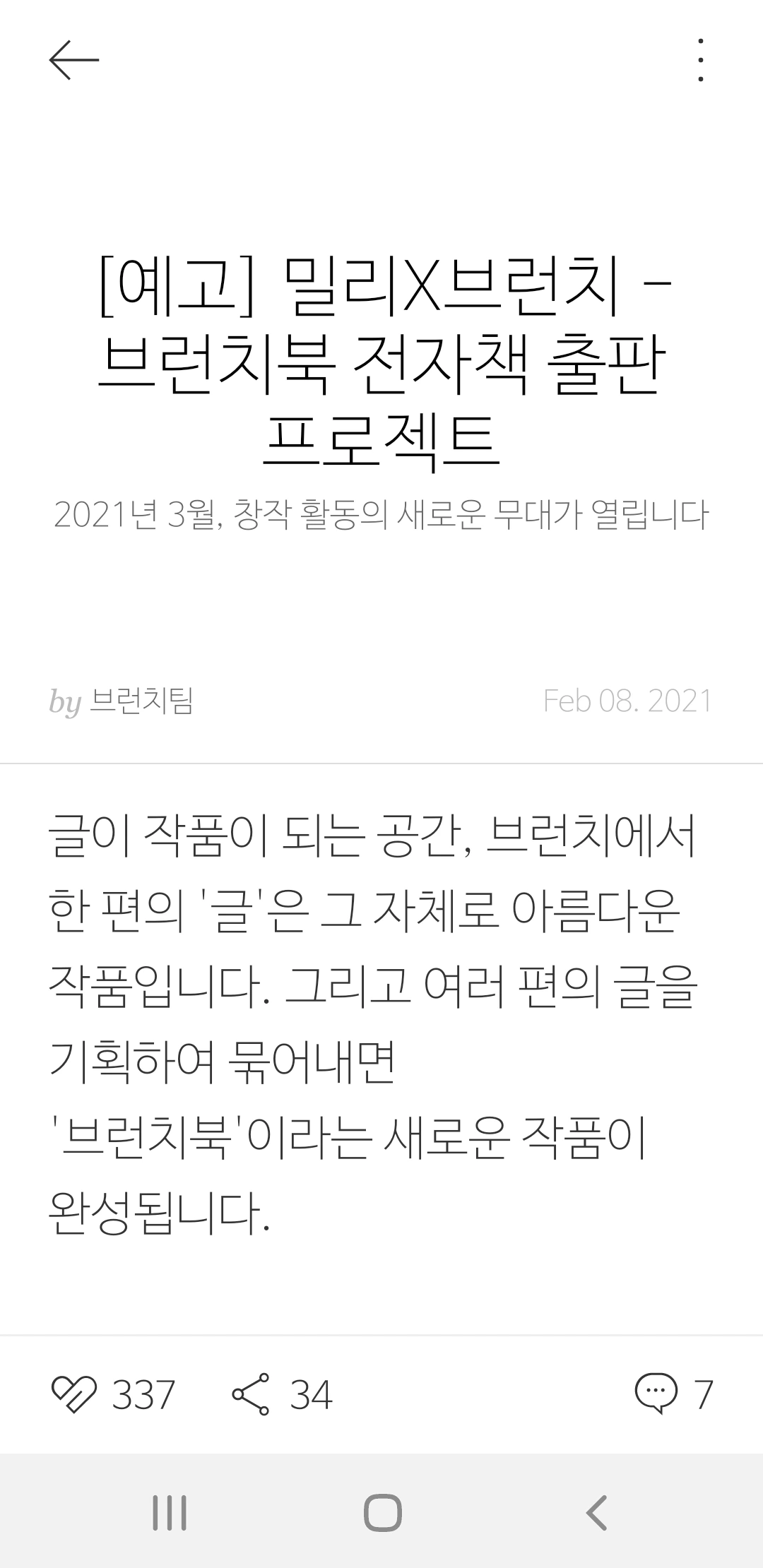 브런치에 많은 이벤트들이 나를 스쳐 지나갈 것이다. 그것을 보는 나는 약간 속이 쓰릴 것이다. 쓰리면 한번 밀도 있게 기획해서 해볼 만할 터인데 나는 그러지 못할 것이다. 내 책은 내가 스스로 독립출판사를 찾아가 한 권의 책으로 묶일 것이다. 그 책은 딱 한 권으로 내 딸에게 읽힐 것이다. 정세랑의 '시선으로부터의'책에서 심시선의 자식들이 심시선이 남긴 책으로부터 엄마를 기억하고 추억하는 것처럼, 내 딸도 그러할 것이다. 글로 돈을 벌 수 있는 처지가 못 되는 나의 처지가 만족스럽지 않지만 그래도 딸에게 책 한 권 줄 수 있는 것으로 족해하고 오늘도 스스로를 위로한다.