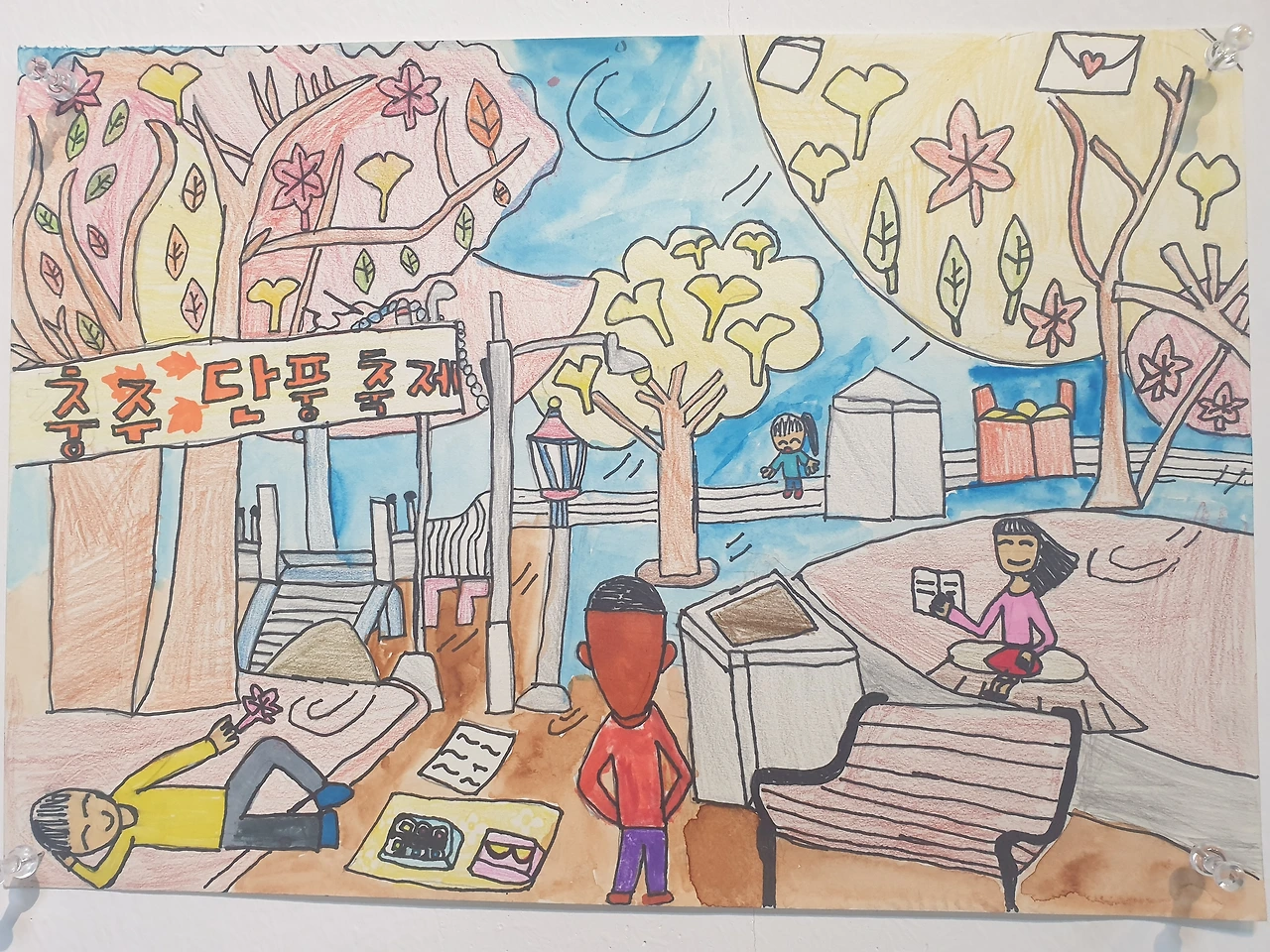 장소도 내가 아그리파를 그리고 한국화를 배웠던 예술관 옆, 미술관이었다. 미술관은 내가 졸업할 때 없었는데 신축된 것 같았다. 수상작이라고 하나 아이들 개인 정보 때문인지 소속과 이름이 밝혀지지 않은 그림들로 전시되어 있어 딸아이의 그림을 겨우 찾았다. 지금은 이사한 지 꽤 되는데 아직도 딸의 그림에는 어렸을 때 살던 도시가 그려져 있었다. 그때가 더 행복했을까? 겨우 찾았지만 알고 보니 내 딸이 그린 것 같았다. 만화 같은 그림에 장난기 가득한 그림, 그 그림 덕분에 몇 년 만에 나는 추억팔이 장소 나의 모교로 왔다.
