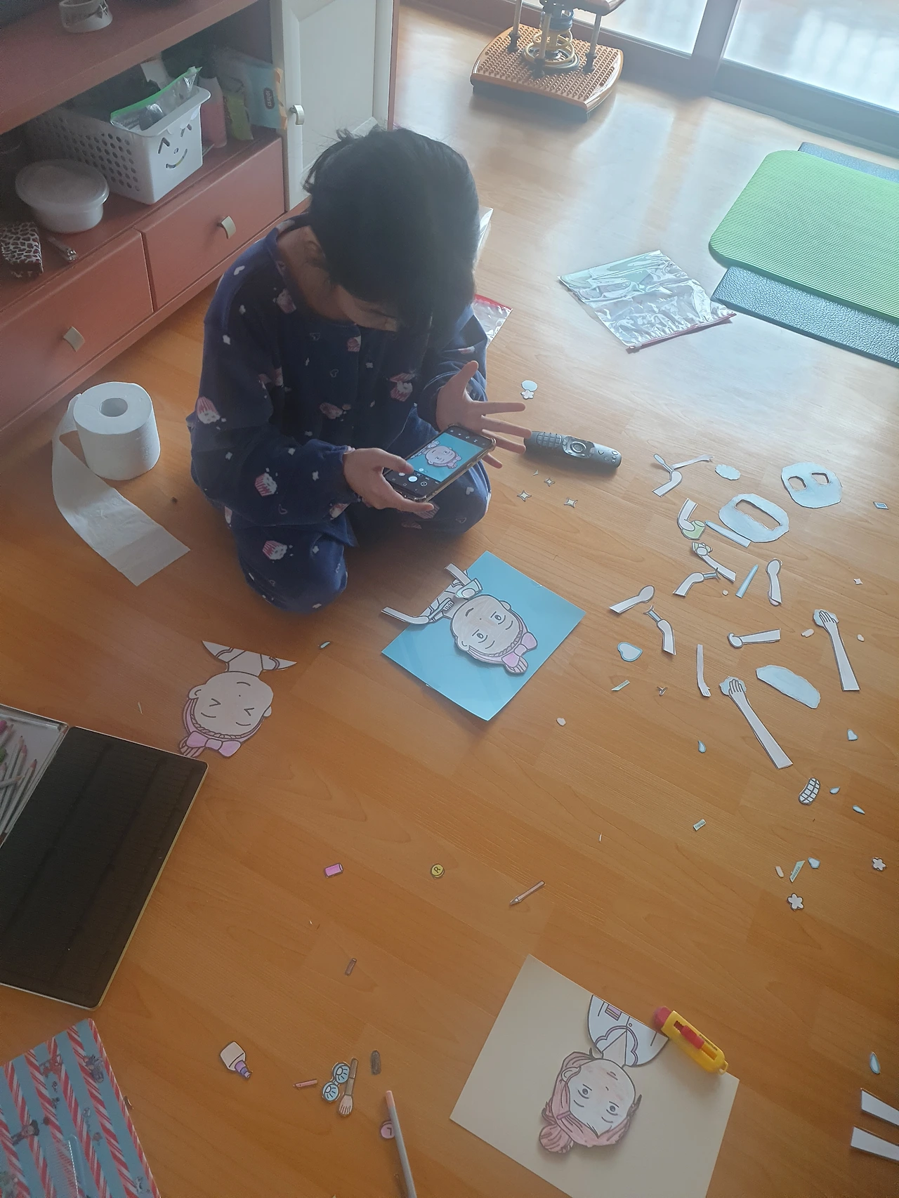 그리고 너는 양치질을 하고 세수를 하고 메이크업을 하는 동영상을 만들겠다고 열심히 기성품을 색칠했어. 그때도 사실 좀 귀찮았어.