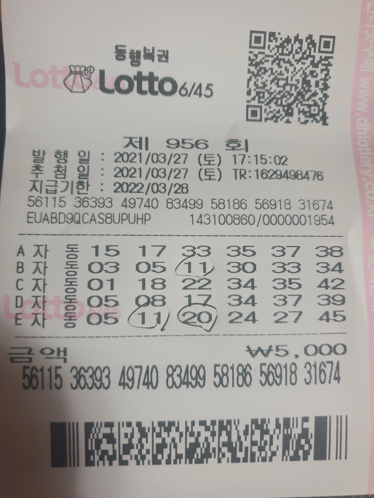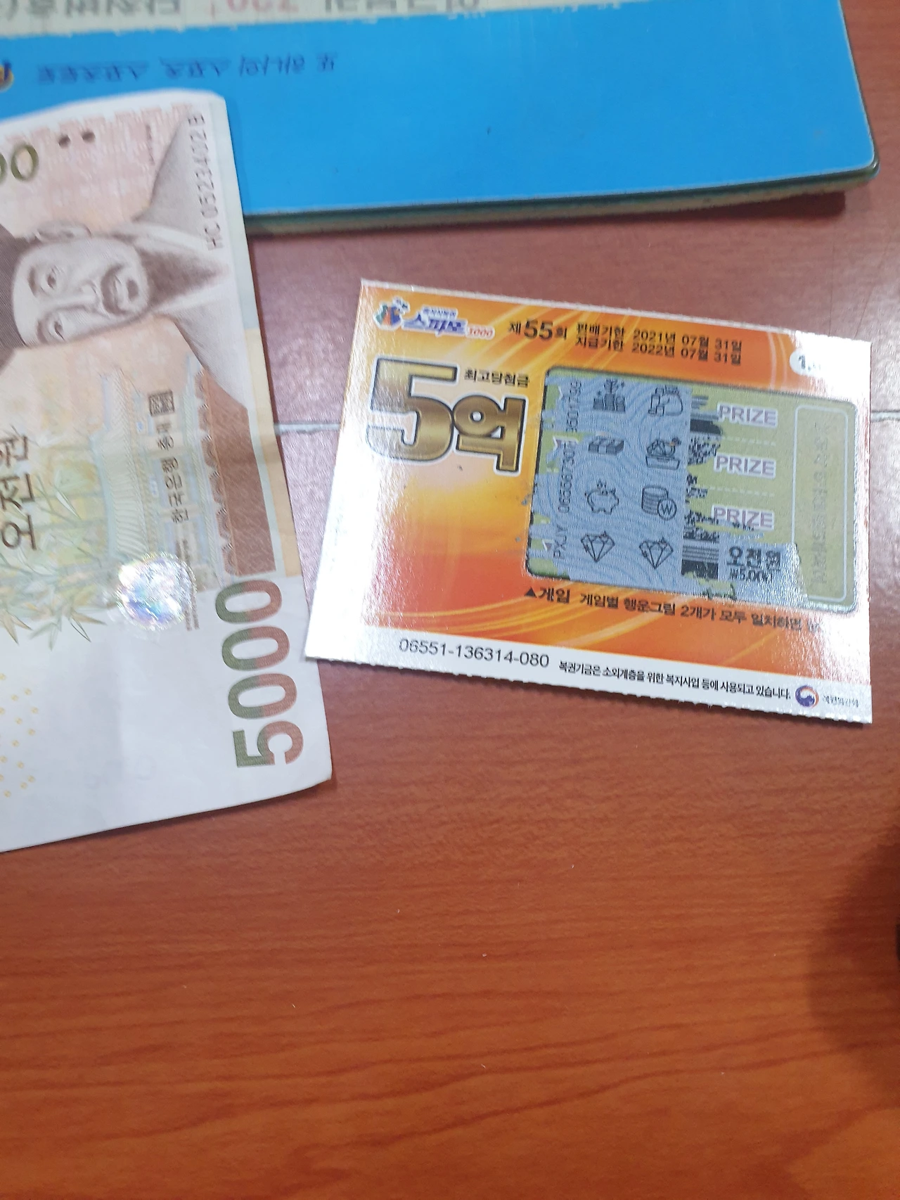 "저 당첨된 것 같은데요!" 나를 보는 아저씨의 표정이 신통치 않다. 뭐 이런 여자가 있나 하는 표정이다. 그리고 말씀을 하셨다. " 옆에 있는 금액을 긁어야 얼마인지 나오지!" 하고 한심한 애 다루는 표정을 지으며 말씀하셨다. 그 표정이 썩 기분 좋지 않았지만 긁으니 나는 오천 원에 당첨되었다.