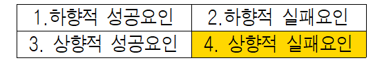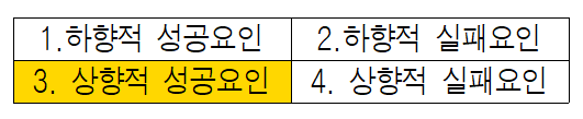 3분면의 상향적 성공요인은 ‘자원, 관계, 관성’이다. 본 사업의 상향적 성공요인으로 ① 고용노동부 일반회계 ¼에 달하는 1조1,500억원의 예산 ② 소득불균형 해소와 정부의 개입에 매우 긍정적인 여론 ③ 노동자 복지정책에 참여하는 이익집단이 한정적이라 정책 네트워크가 안정적인 점을 들 수 있다.