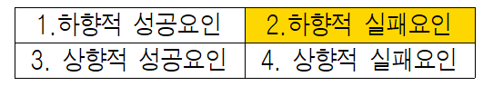 2분면의 하향적 실패요인은 ‘유인력, 반작용, 강제력’이다. 본 사업의 하향적 실패요소로 ① 보조금의 편익보다 추가 부담금이 커서 유인수단으로 매력적이지 않은 점 ② 정책대상자인 저임금 노동자들이 금전적 인센티브에 둔감하다는 점 ③ 의도하지 않은 반작용으로 정규직 고용기피, 아웃소싱의 확대, 근로계약서 미작성 등의 유인이 발생하는 점을 들 수 있다.