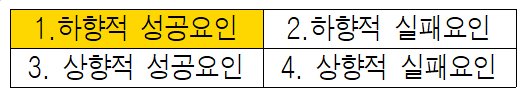 1분면의 하향적 성공요인은 ‘명확성, 일관성, 타당성’이다. 본 사업의 하향적 성공요소로 ① 영세사업장과 저소득 노동자’의‘사대보험 가입률 증대’라는 명확한 목표가 하달된 점, ② OECD가 권고하는 공식 고용전략으로 정당성을 확보한 점 ③ 선거철을 앞두고 대통령과 여야를 막론한 의회의 탄탄한 지지가 있었던 점을 꼽을 수 있다.