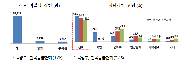 취업의사자 중 20.5% 구체적 계획 없음(특히, 전투병과)