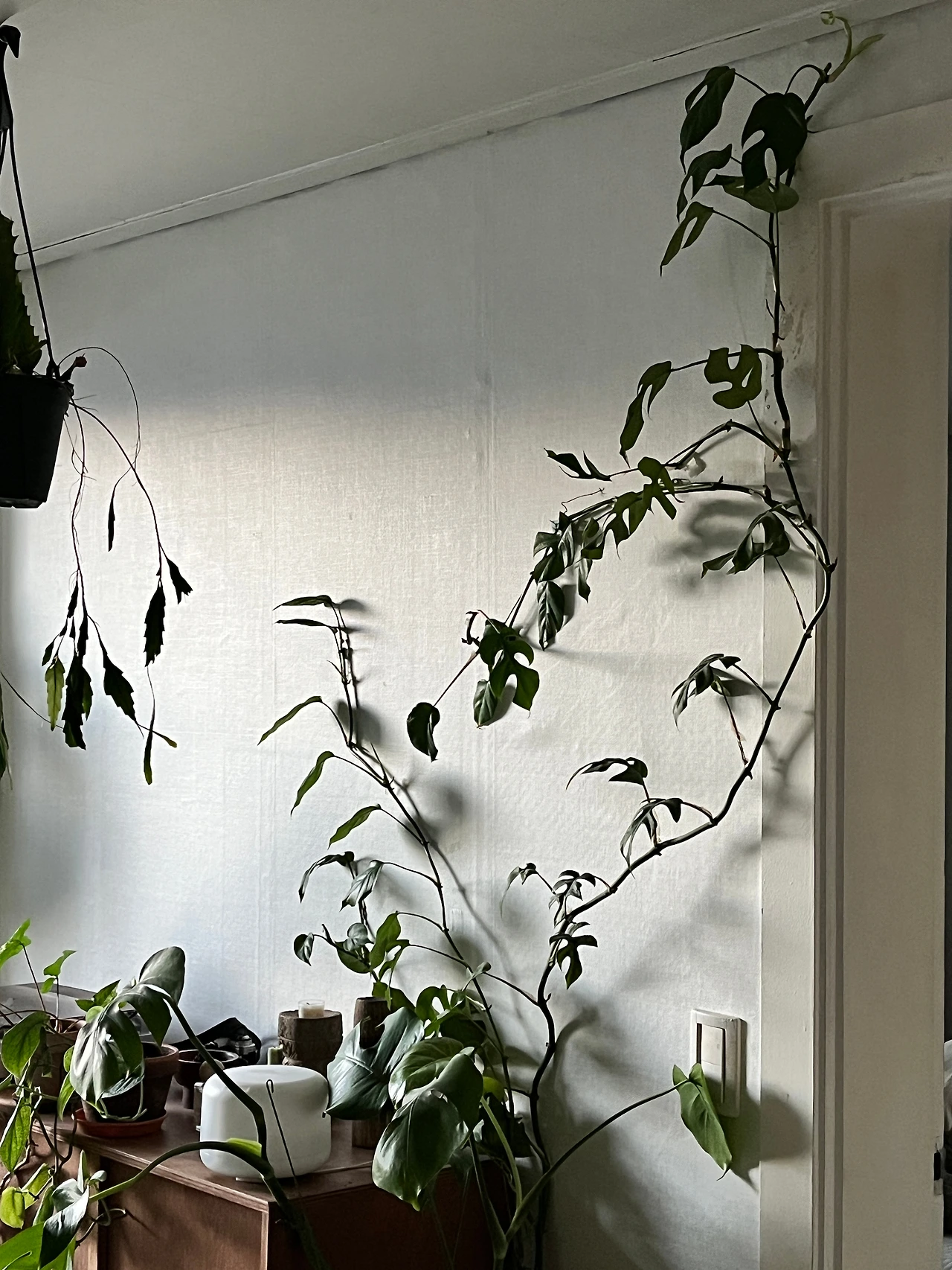 처음 데려왔을 때, 손바닥만 했던 히메몬스테라는 벽을 타고 올라가며 천장까지 닿았다. 호프셀렘은 더 넓은 화분으로 옮겨 심겨지며 한층 더 넓고 단단한 잎을 가지게 되었다. 식물들은 계절을 거치며 서서히 자란다.