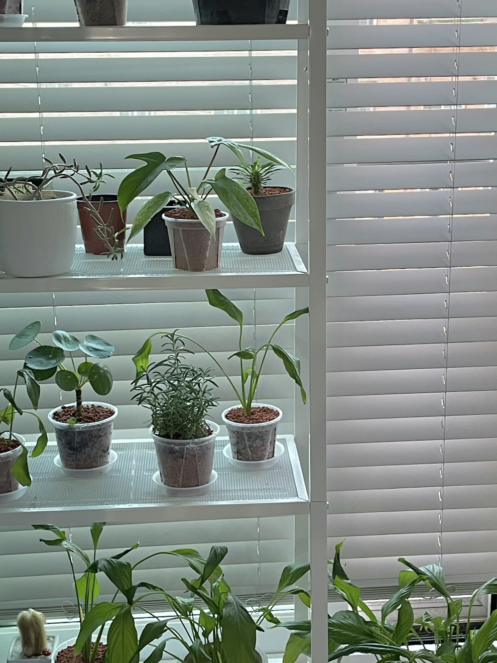 자취할 때부터 쓰다가 버리기 아까워 신혼집에까지 들고 왔던 이케아 국민 선반 위에 식물들을 층층이 올려주기로 했고,