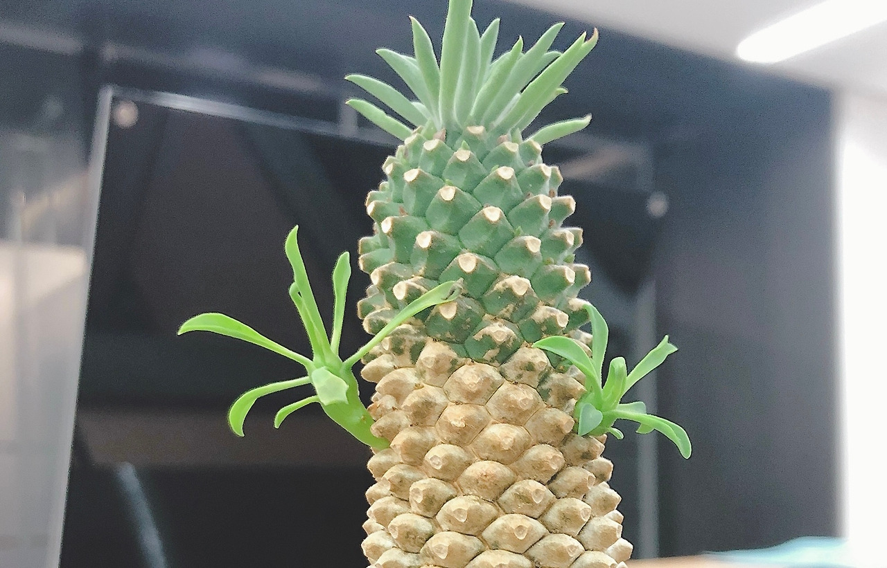 몸통줄기는 거칠거칠 갑옷을 입은 것 같고, 또 머리에는 초록초록한 귀여운 싹들이 삐죽 튀어나와 있었다. 마치 파인애플을 연상시키는 귀여운 모습이었다.