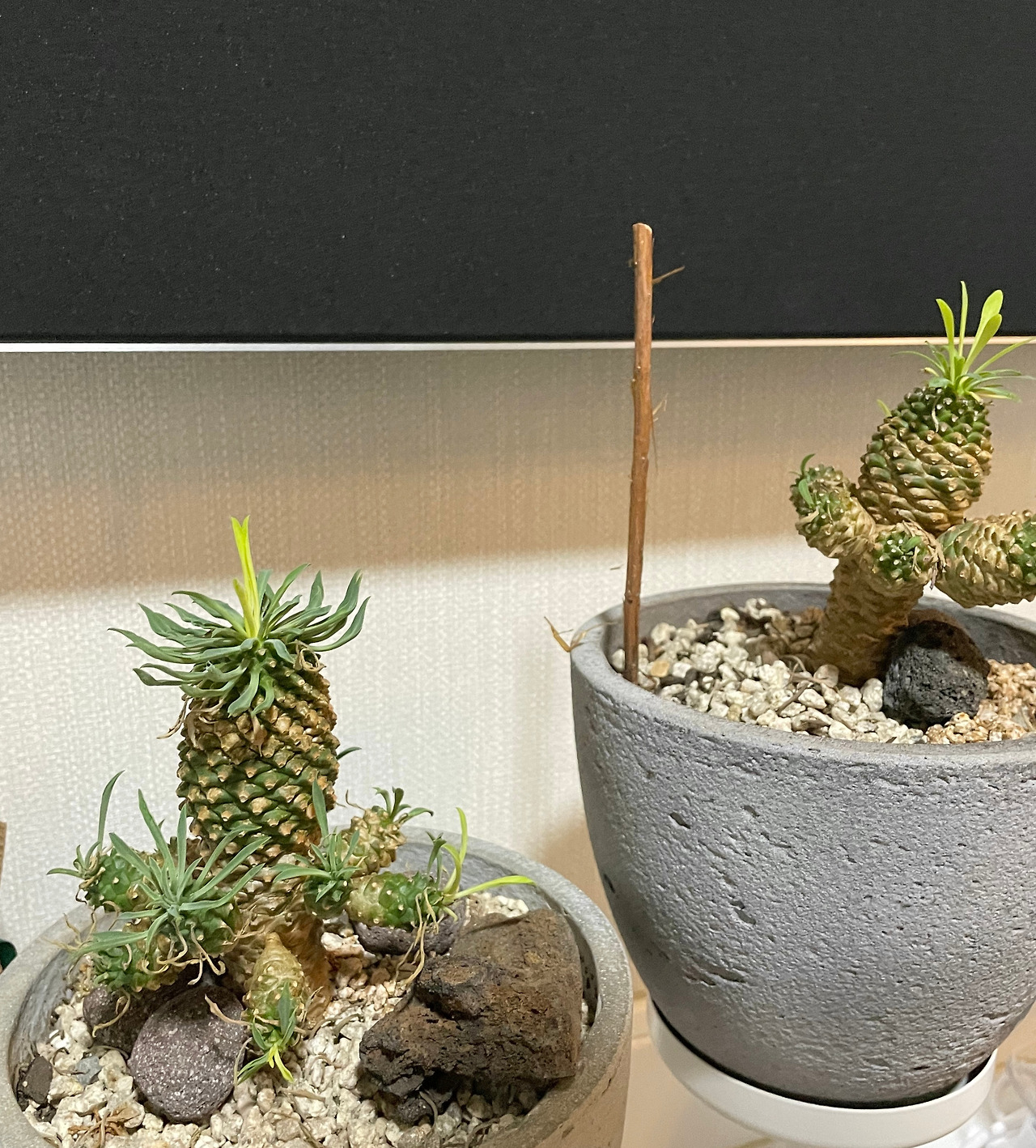 다육이 종류만 모아놓고 파시던 사장님의 가게였는데, 직접 자구분리를 해서 팔 하나를 뜯어 심어서 키우신듯한 느낌이었다.
