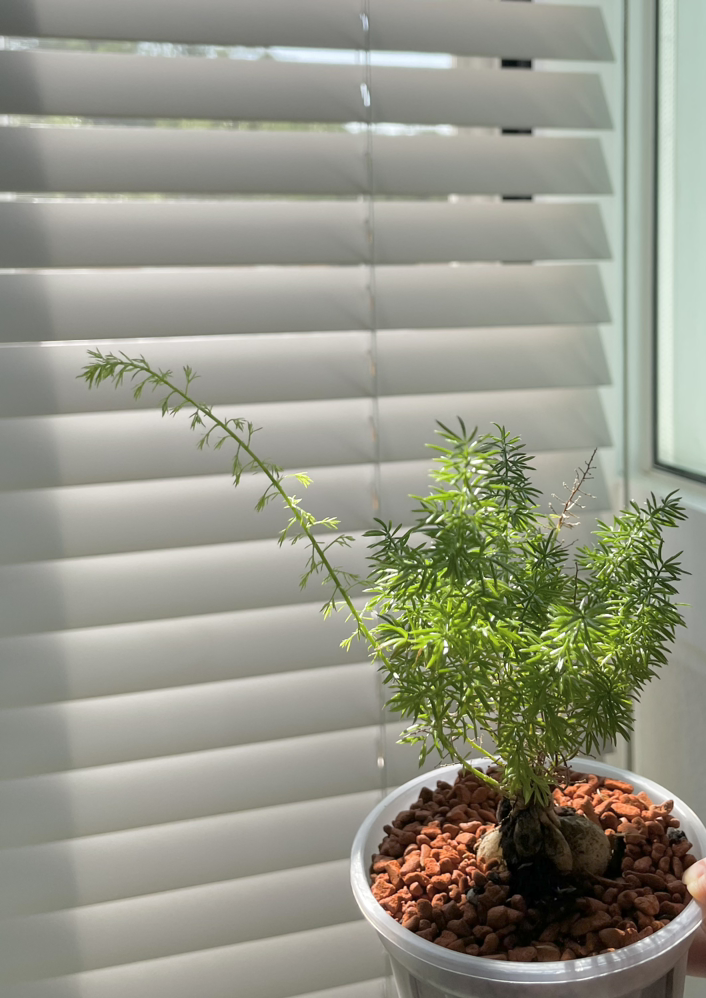 하지만 이 징그러운 알뿌리가 아스파라거스 메이리에게는 수분 저장 창고 역할을 해주고 있어, 기특한 녀석이라고 할 수 있겠다. 그래서인지 메이리는 물을 좀 말려서 키우는 느낌이더라도 항상 주기적으로 건강한 새순도 내어주고 싱싱한 초록잎을 유지했던 것 같다.