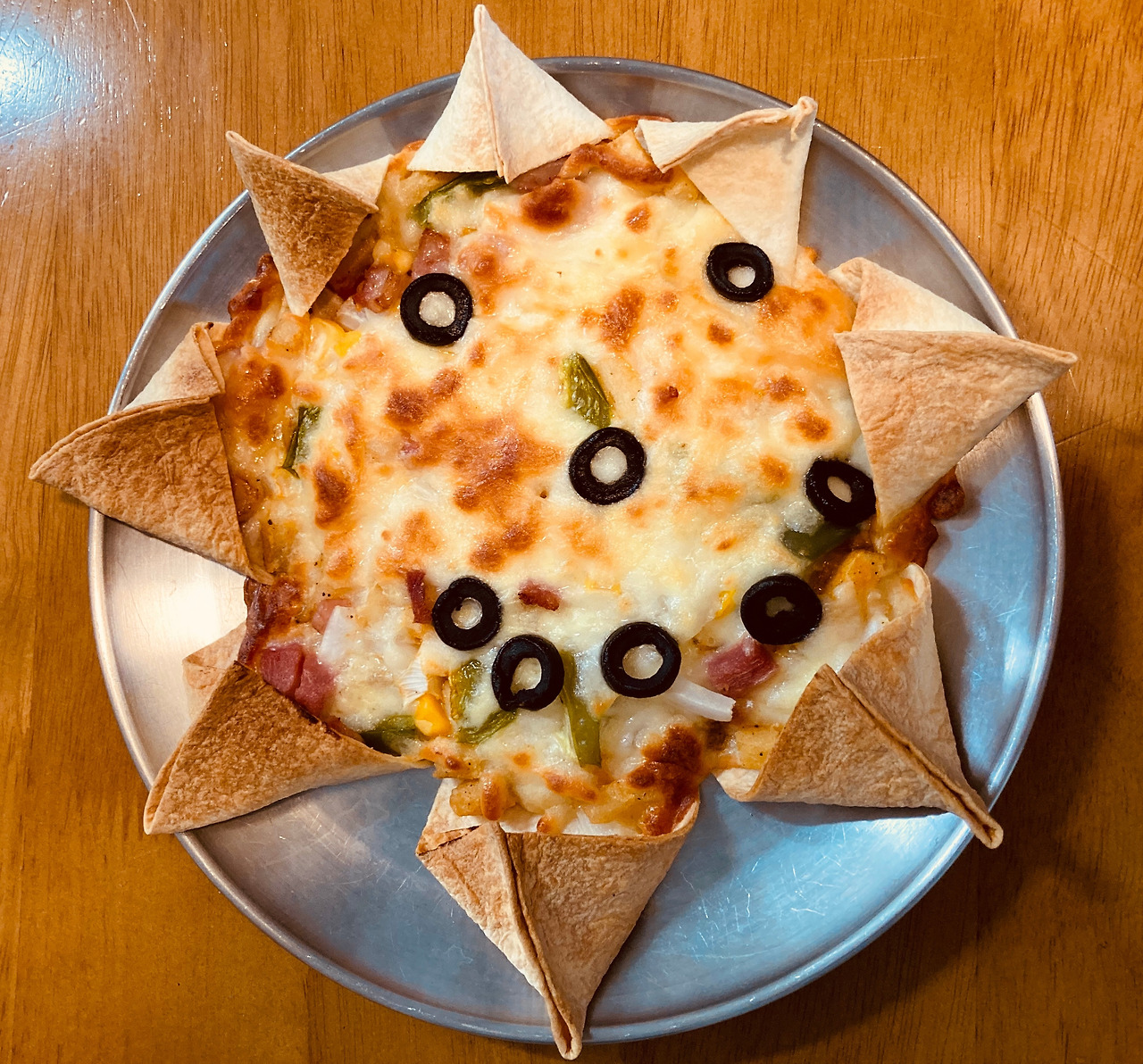 1. 오븐판 위에 또띠아를 아무렇게나 놓는다.