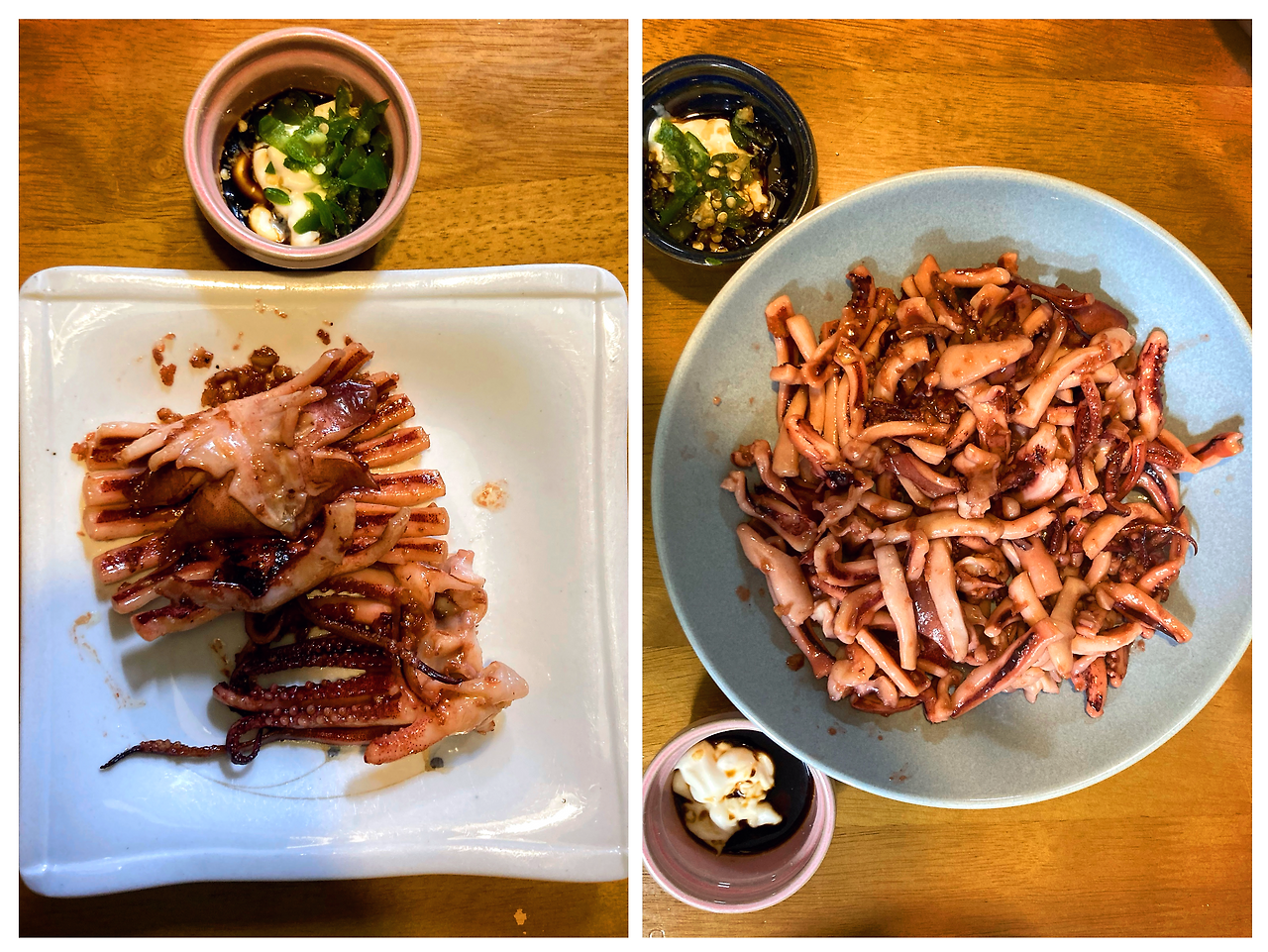 (반건조 오징어 말고, 생물이나 냉동 오징어로도 만들 수 있다고 한다.)