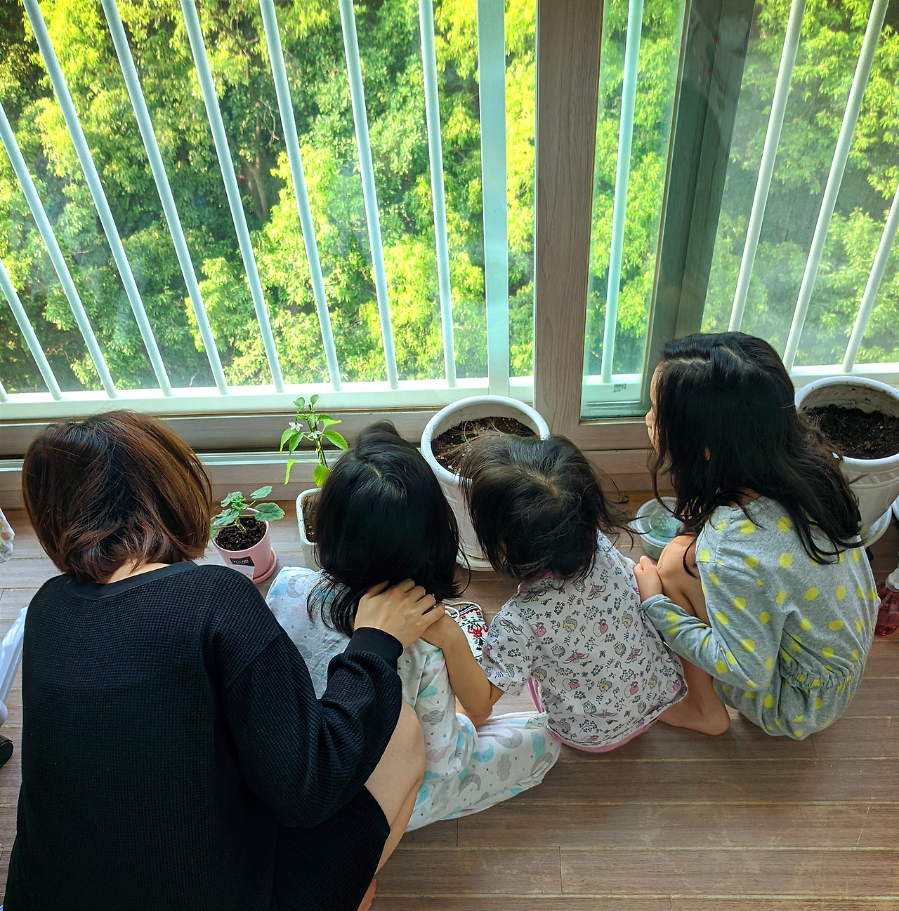 그런데... 코로나가 터진 것이다. 몇 차례 개학이 미뤄질 때마다 나는 정말 미치는 줄 알았다. 남편도 재택을 하느라 집에 있었다. (남편이 있어서 분명 도움도 됐지만… 남편은 정말 '근무'를 했다.) 모두 기억하다시피 코로나 초기엔 집에만 있어야 했다. 5인 단체합숙 시작.