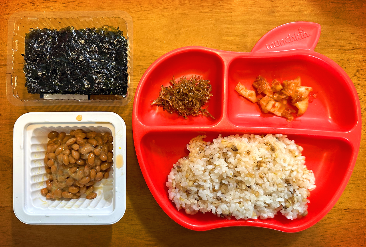 따뜻한 밥에 김, 김치, 그리고 낫또면 끝.