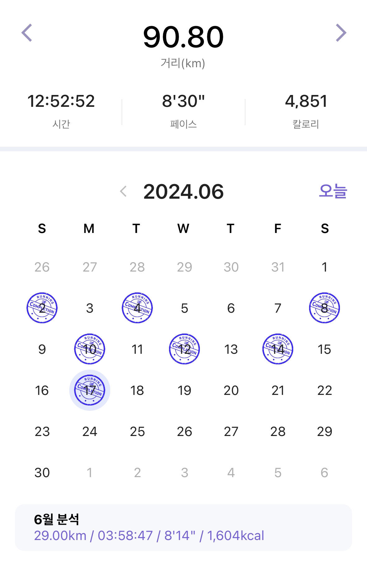 그런데 지금 벌써 6월의 반이 지났고 나는 5킬로도 쉬면서 겨우 달린다. 현재까지 진행상황으로 보건대... 추정해보다, 과연 될까? 하는 의문이 든다.
