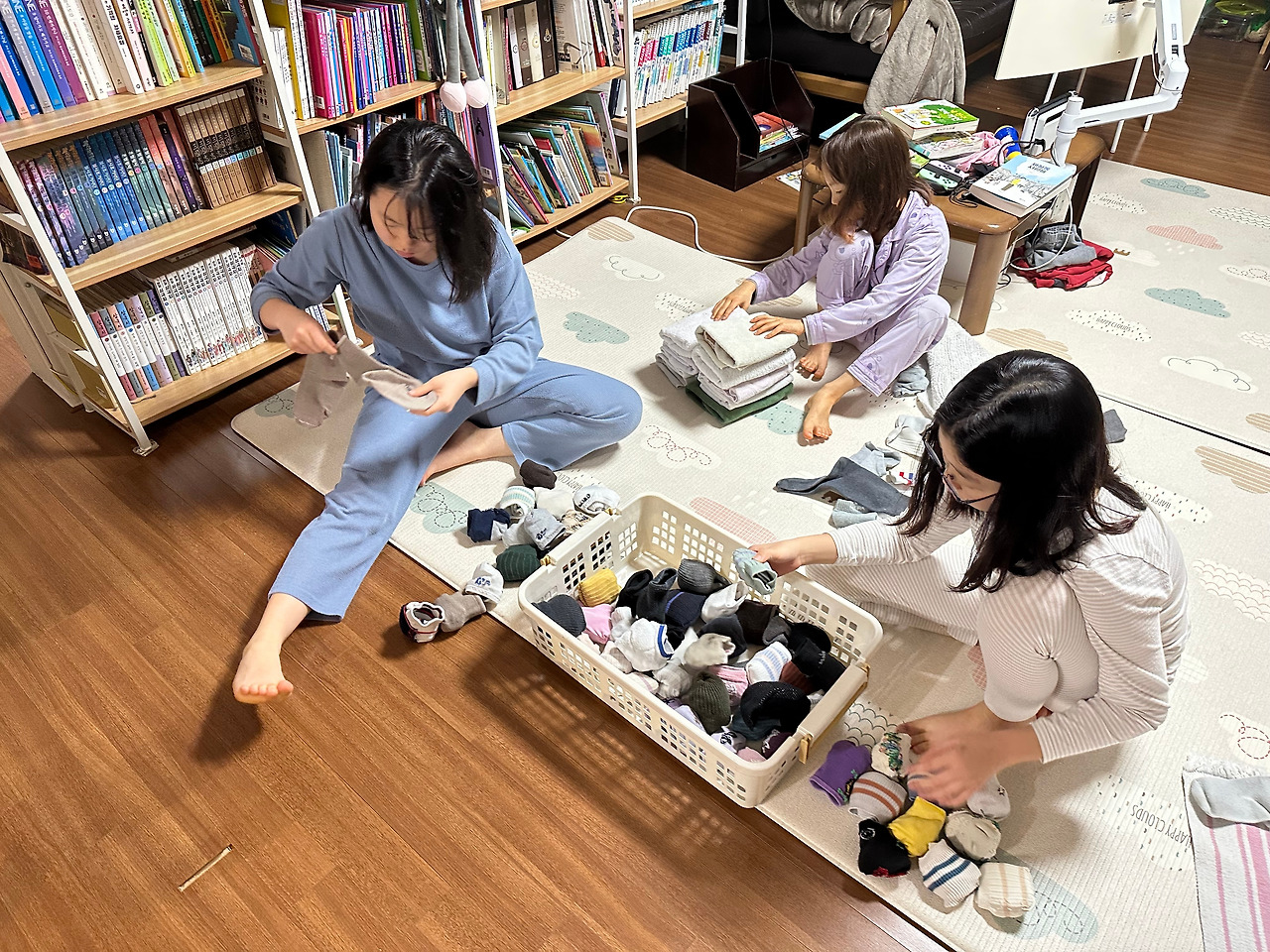 아이들에게 '양말 개는 일'을 아예 일임한 지 어언 3년. 스스로 자기 일을 하는 것 말고 가족을 위해, 셋이 다함께 하는 일 1호인데, 슬슬 하나씩, 시나브로 늘려나가고 있다.