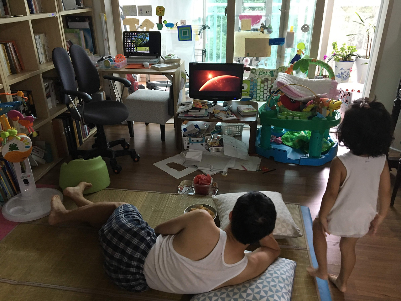 안방 침대에 아기를 재우면, 우리는 할 수 있는 게 없었다. 안방과 주방을 가르는 여닫이 문은 불빛도 소리도 막지 못했기 때문에, (운 좋게 우리에게 시간과 에너지가 남아서) 무언가 하려면 우리는 창고 같은 작은방에 숨어들어야 했다. 음모를 꾸미는 것 같아 키득키득 웃기도 했지만, 사실 우리 처지가 처량해서 우습기도 했다.