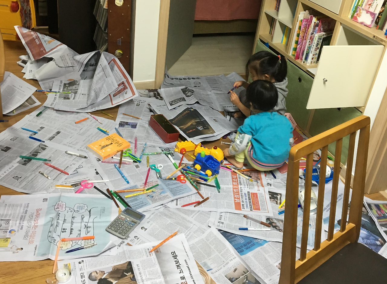 이적 엄마이기도 한 박혜란의 책 <믿는 만큼 자라는 아이들>에는, '그냥 엉망진창으로 하고 살았다고, 그러면 오히려 아이의 창의력이 발달된다'는 식의 이야기가 나온다. '옳다구나! 그래, 어차피 치워도 금방 엉망인 걸, 기준을 내려놓고 살지 뭐, 그럼 아이도 잘 큰다는데!' 하며 지낸 적도 있었다.