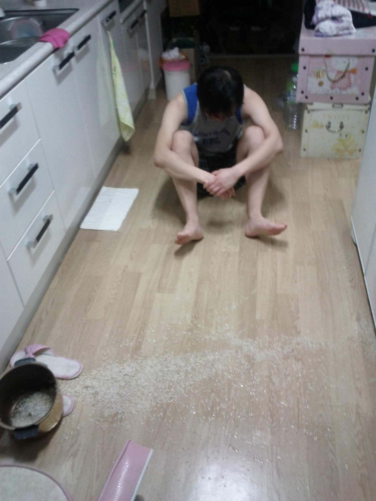 2위부터. 남편이 돌쯤 된 첫째를 안고 주방(겸 거실)을 왔다갔다 거닐었다. 노래를 불러주었던가, 이야기를 해주었던가. 기분이 좋은 첫째는 다리를 팔랑팔랑 흔들고 있었다. 그 발 끝에 싱크대 위에 있던 밥솥(전기밥솥의 내솥)이 걸렸다. 그래서 밥솥이 바닥으로 내동댕이 쳐졌는데, 문제는 그 안에 씻어놓은 쌀과 적당량의 물이 들어있었다는 것이다.